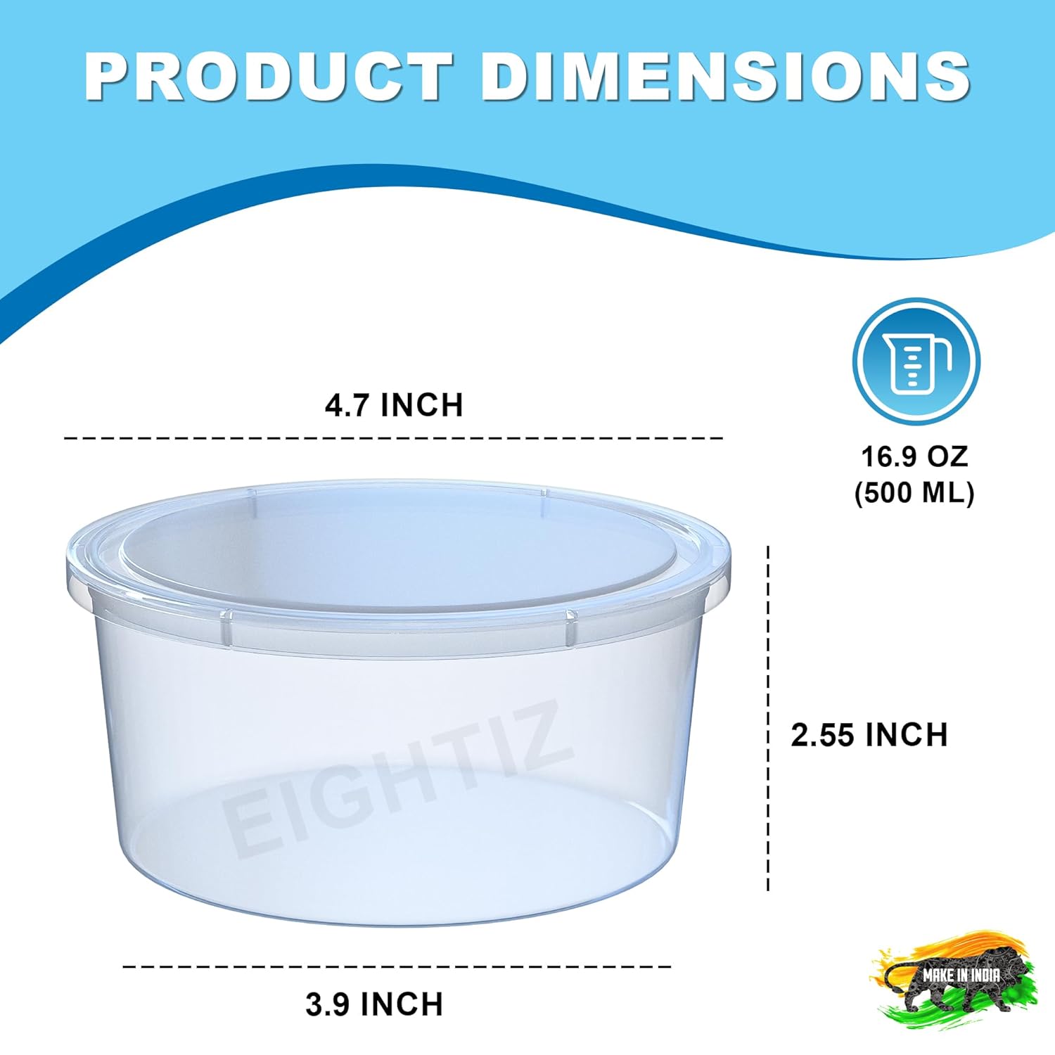 Eightiz(Pack of 20 Fridge Storage Boxes Freezer & Refrigerator Organizer Containers Kitchen Accessories Items for Home Food Storage,Meal,Takeaway & Delivery,Picnic and Outdoor (500 ml,Transparent)