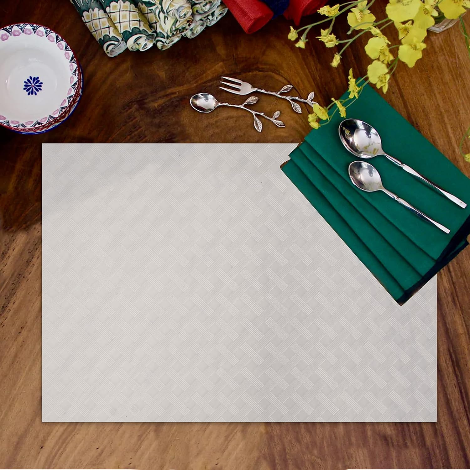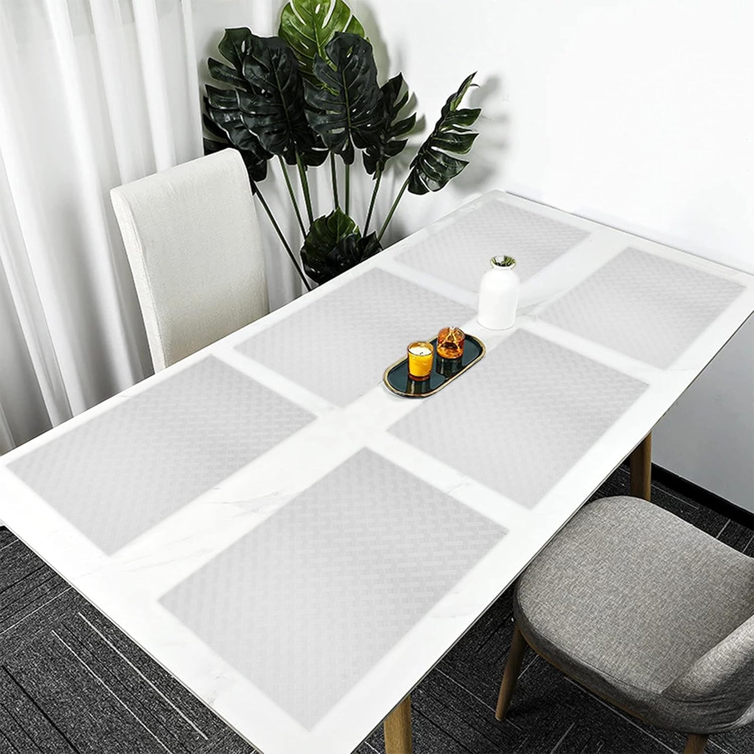 ElastPro Placemat Set of 6 Heat-Resistant Place Mats Stain Resistant Washable, Dining Table and Fridge Mat (Diagonal Pattern, Transparent