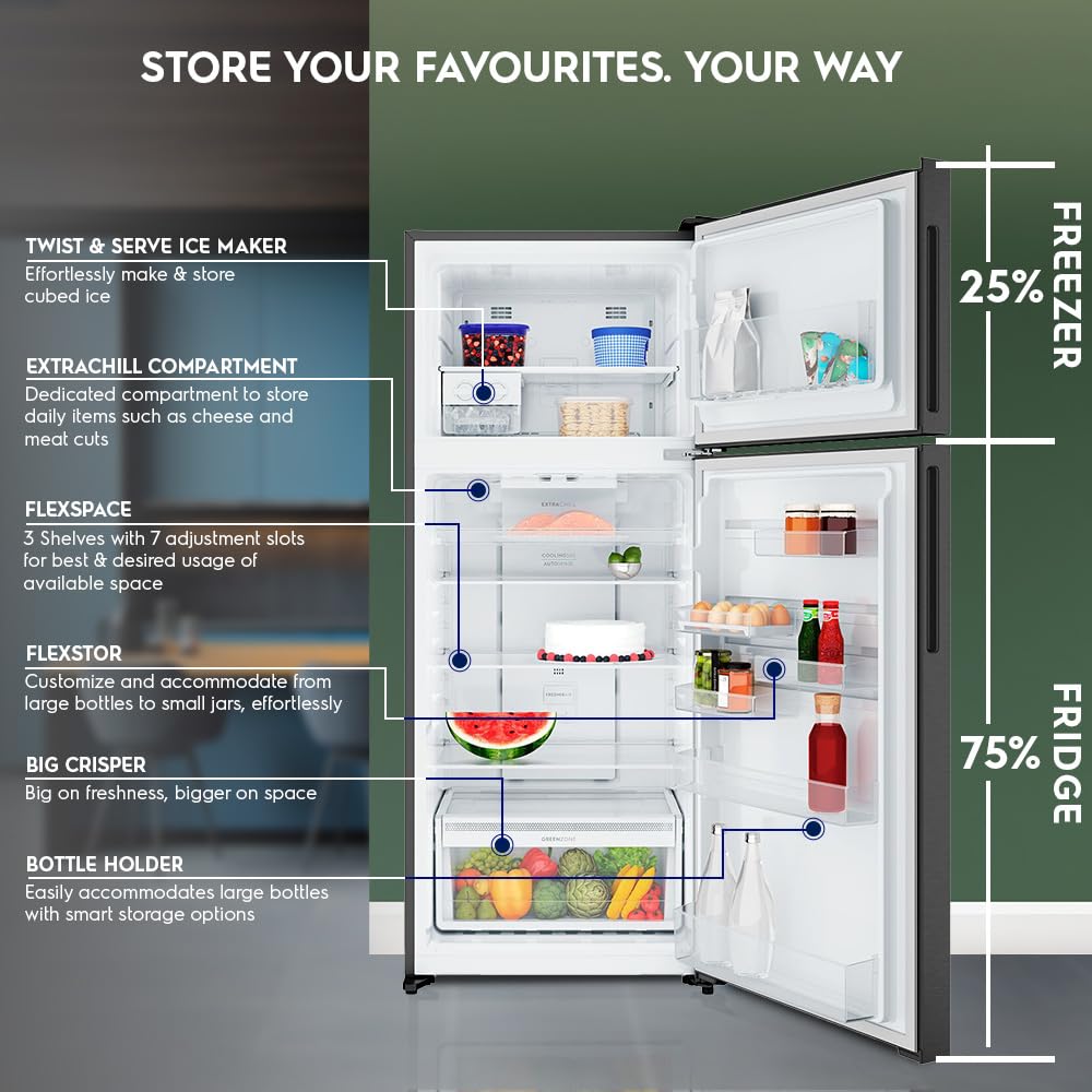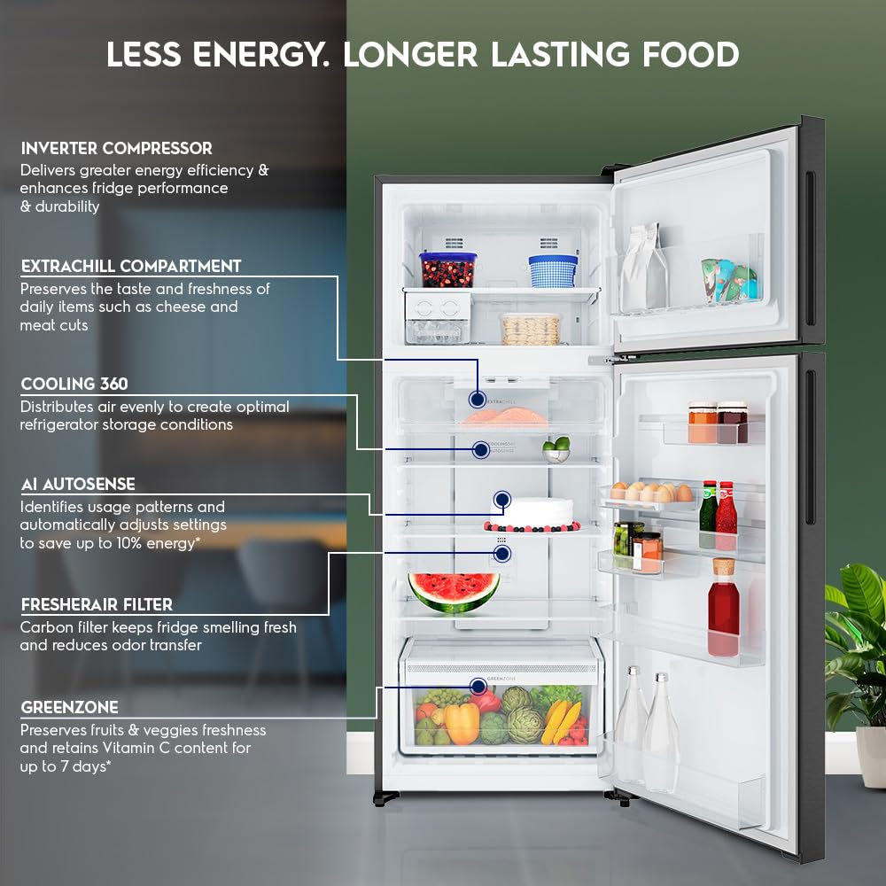 A Fresh, Odour-free Fridge: FresherAir carbon filter preserves the natural aromas of your stored food and keeps the double door refrigerator smelling fresh. This filter effectively absorbs unpleasant odours and reduces any transfer between ingredients.