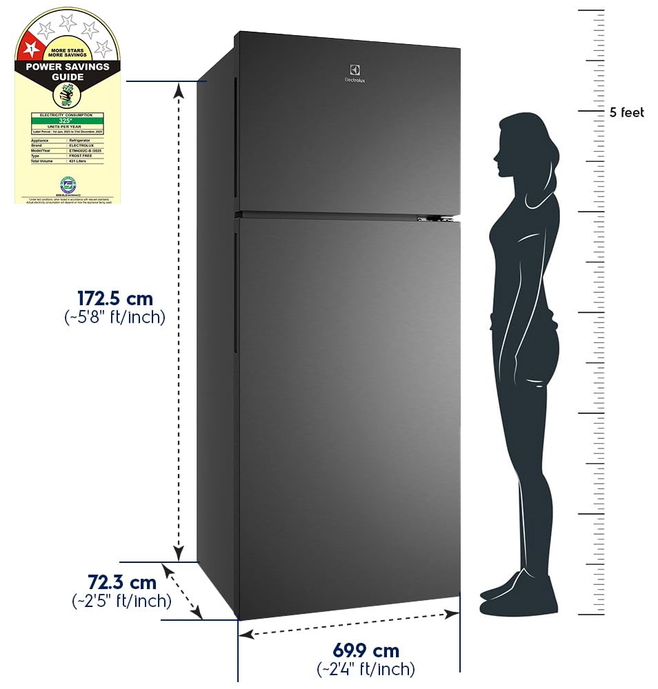 Electrolux 431L 1 Star AI AutoSense Inverter Frost Free Double Door Refrigerator, GreenZone AHC Technology, UltimateTaste 700, ETM4302C-B, Matte Charcoal Black Steel