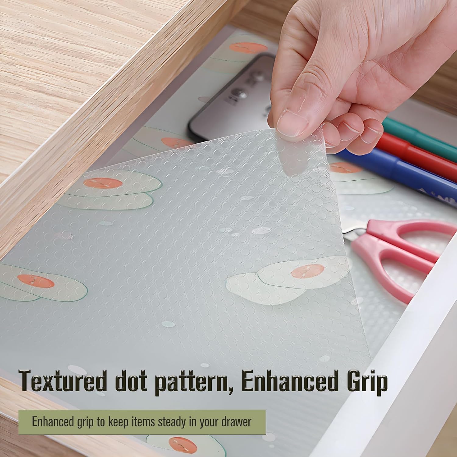 【Easy to Install & DIY】: ESPERO kitchen cabinet liner is very convenient to use, you can easily cut out the size you need with scissors or DIY into various patterns you want, not only to protect the drawer or table surface, but also to decorate the house. Is the best choice for home life.