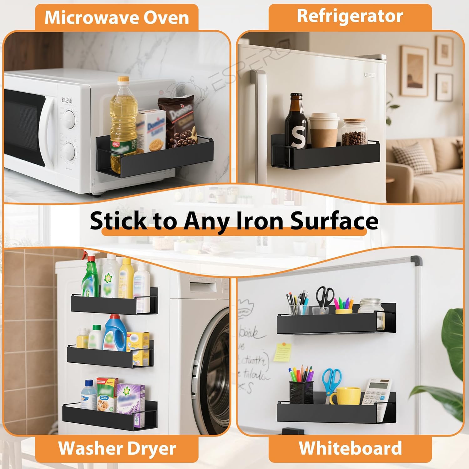 WIDELY APPLICATION: It is suitable for various smooth metal surfaces (mainly the side of the refrigerator), and can also be adsorbed on other metal cabinets (such as microwave ovens, washing machines, etc.) or tool racks.
