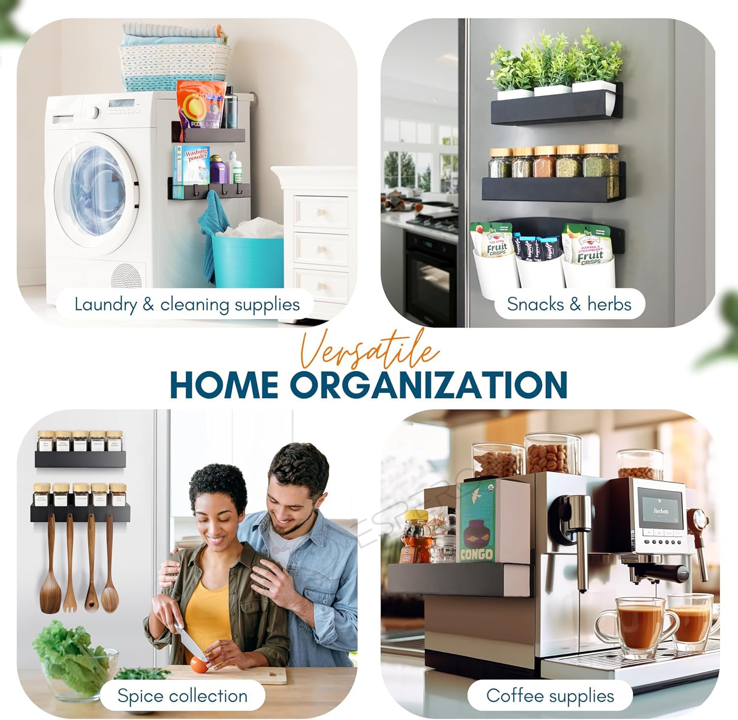 STABLE LOAD-BEARING DESIGN: The structure is stable, and the strong magnetic core of high-quality materials is selected to ensure firm adsorption. It can firmly hold common items such as seasoning bottles, beverages, coffee, etc., and it is not easy to slip.