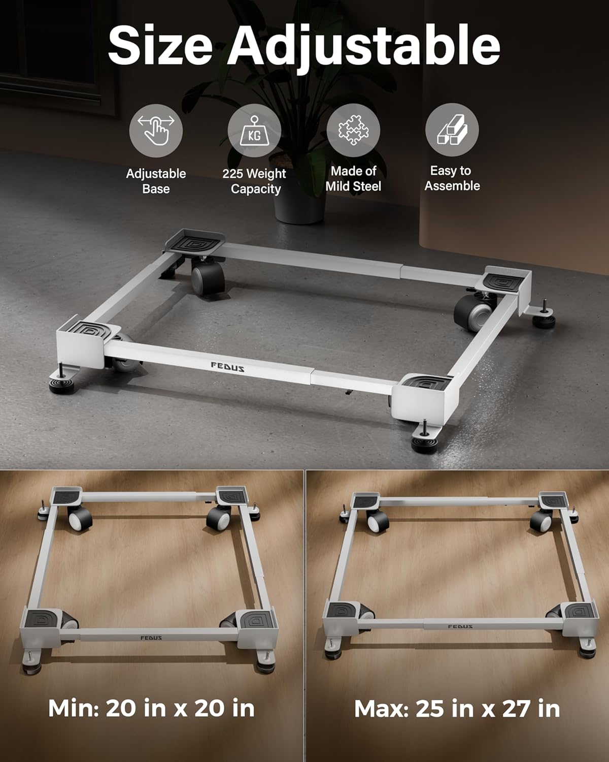 FEDUS Fridge Stand Trolley with Wheels, Refrigerator Stand, Single Double Door Adjustable Metal Stand Compatible for Bosch, Samsung, Haier, LG, IFB, Whirlpool, Haier, Godrej, Voltas Machine