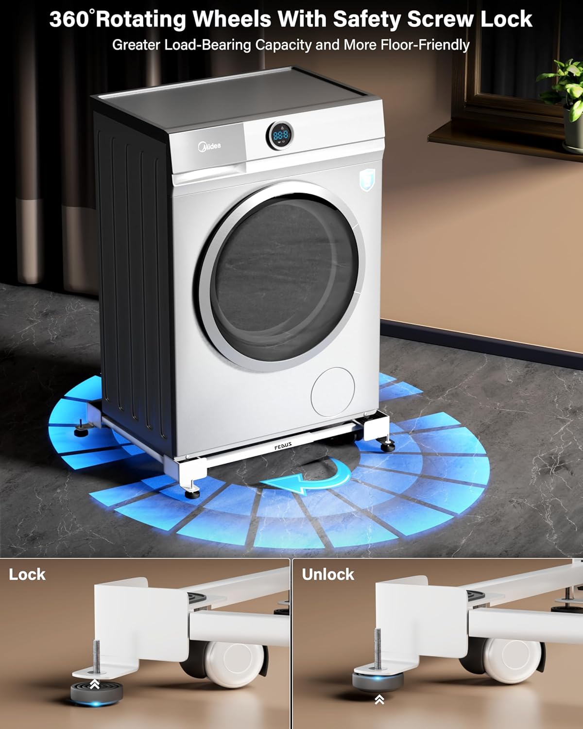 ▶EXTREEM STABILITY: This Movable Trolley for Appliances comes equipped with a unique screw mechanism at each corner, paired with anti-slip rubber pads. Simply tighten the screws, and the rubber pads will securely grip the floor, ensuring your trolley stays in place. This added feature prevents the trolley from shifting or sliding, even when handling heavy appliances. The screw and pad system creates a strong, stable base, giving you peace of mind that your appliances will remain safe and immobileSuitable for front load & top load fully automatic washing machines (excluding semi-automatic models), making it a versatile addition to your home.