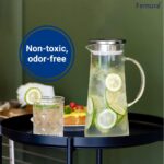 8 reviews for Femora Borosilicate Glass Jug with Stainless Steel Lid | 1.7 LTR | Glass Jug with Lid, Glass Water Jug, Pitcher for Serve Juice, Beverage, Cocktail (1 Pcs Set | BPA Free), 1500 milliliters