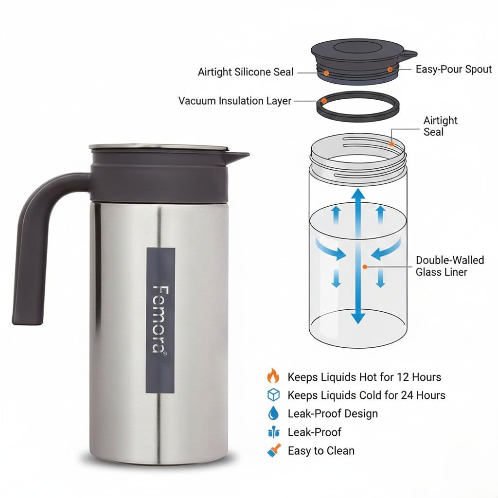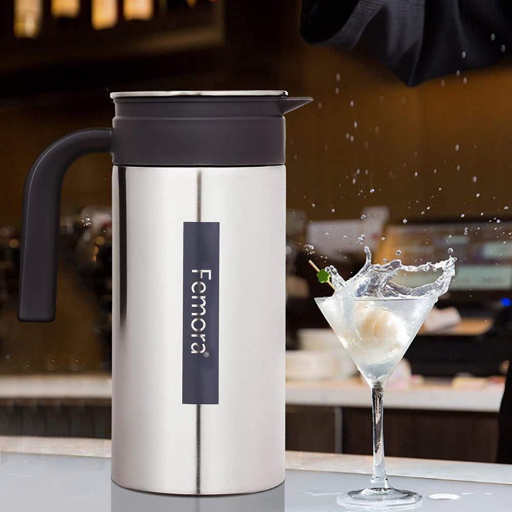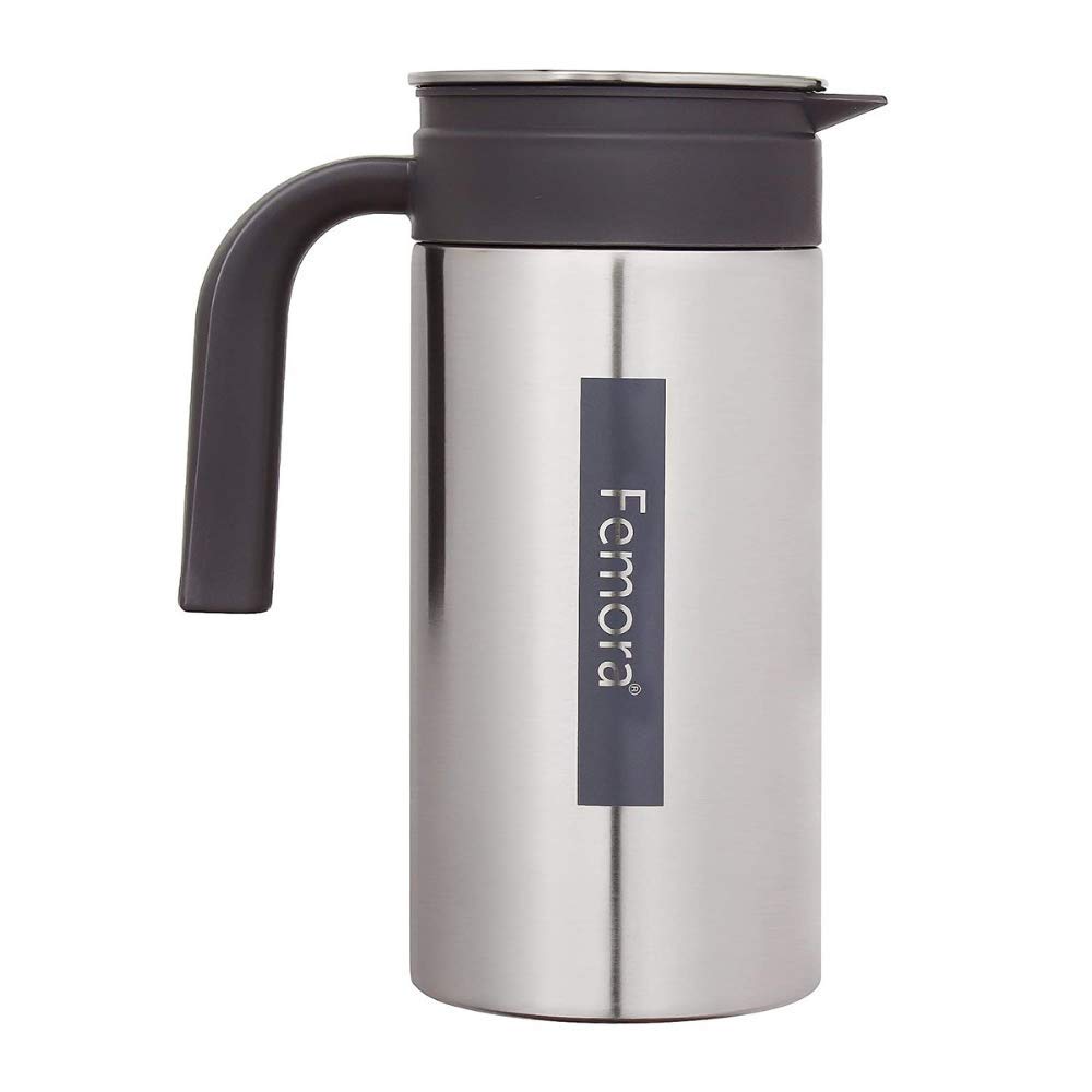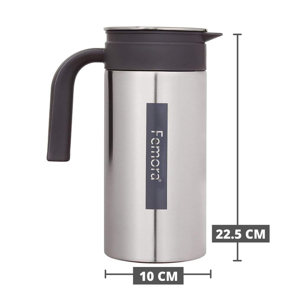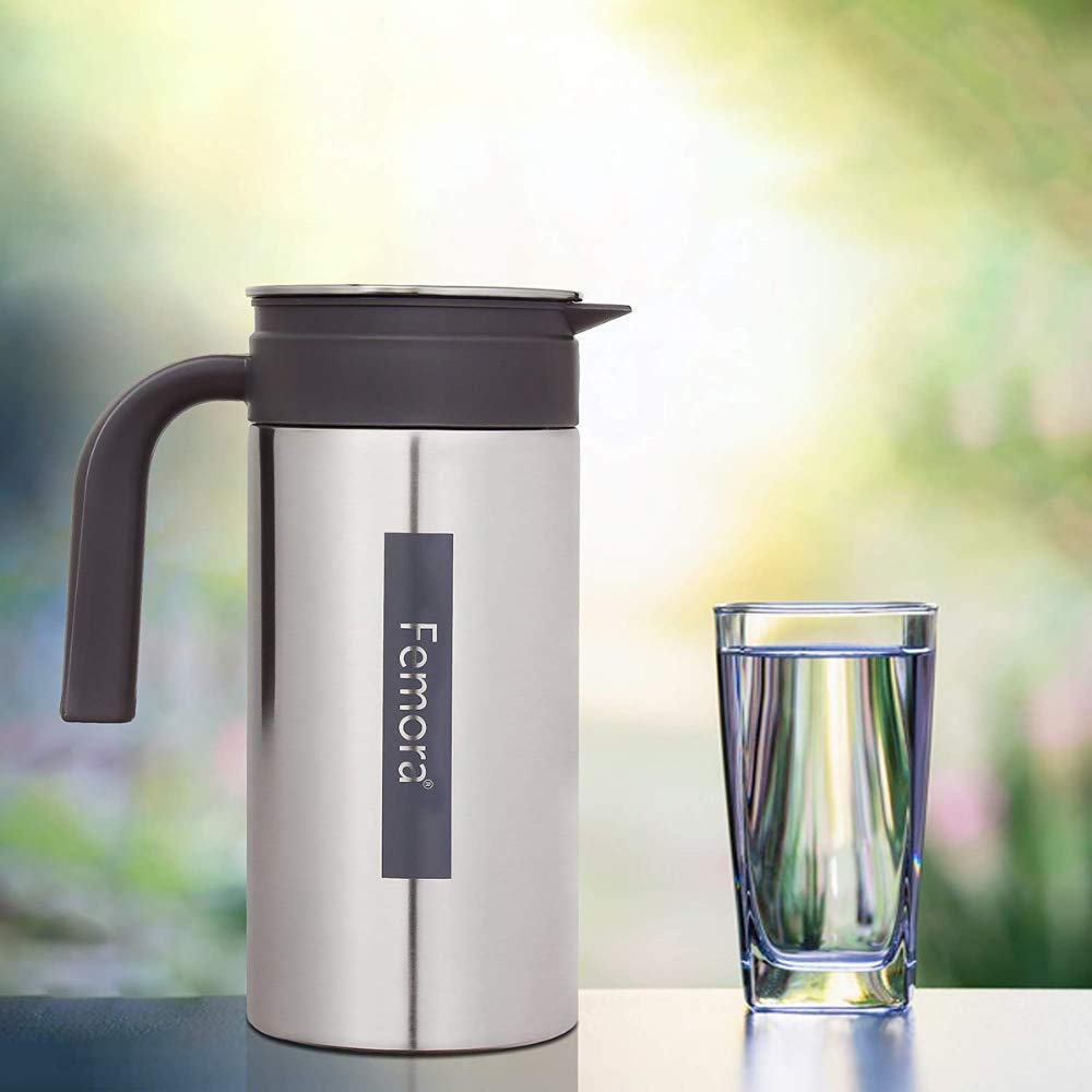 Femora Stainless Steel Jug | 1 Year Manufacturing Warranty, 1500 ML | Steel Jug for Water, Serve Water, Beverages, Iced Tea, Juices | Pack of 1 | BPA Free (Silver Black)
