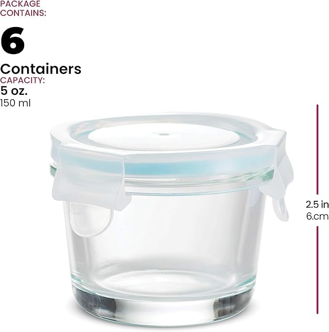 FineDine Baby Food Prep Glass Container – 150ml each|Air-Tight Fridge Organizer Case|Glass Box with BPA-Free Locking Lids|Microwave & Freezer Safe|Leak Proof Food Storage Meal Prep Containers-Set of 6(Transparent)