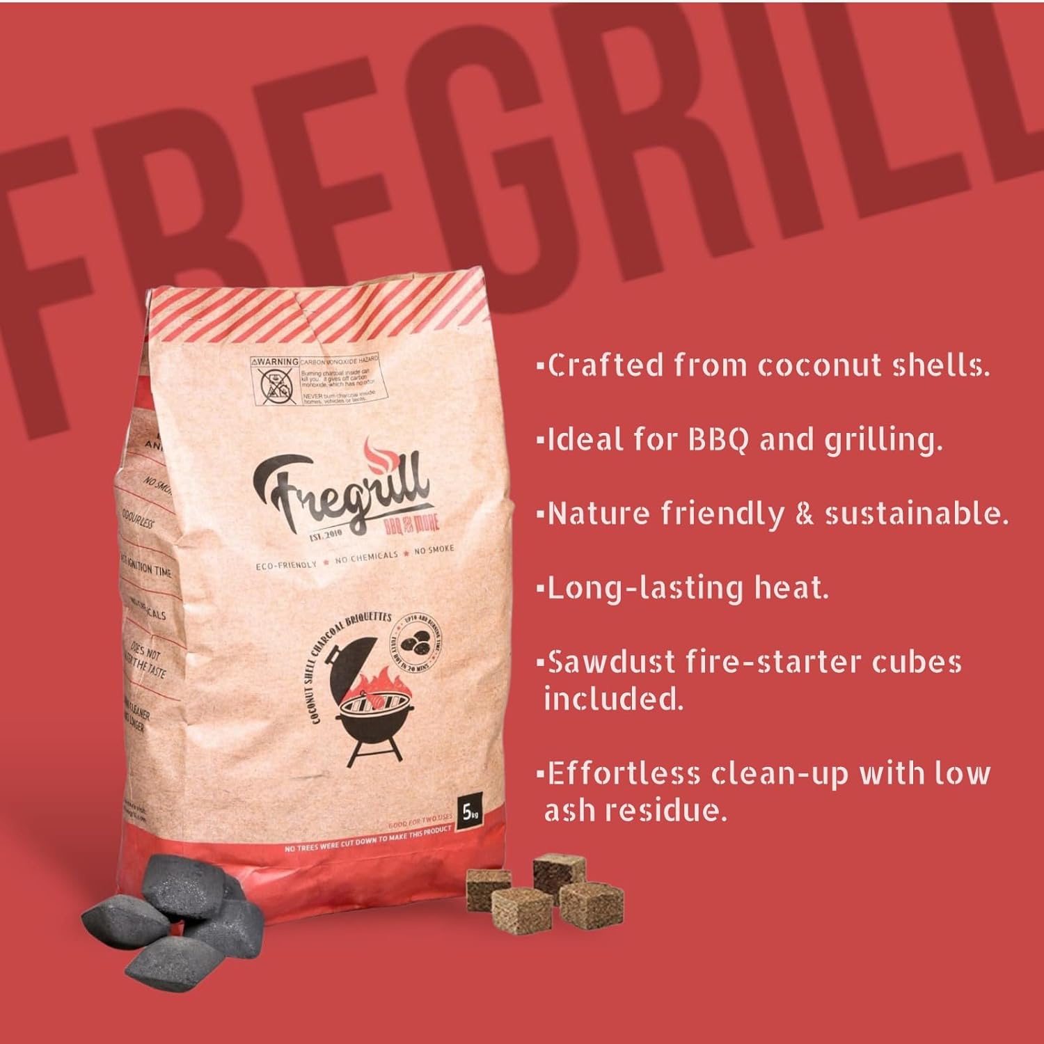 FREGRILL Charcoal Briquettes for Barbecue (5 kg) with FIRE STARTER CUBES for ignition