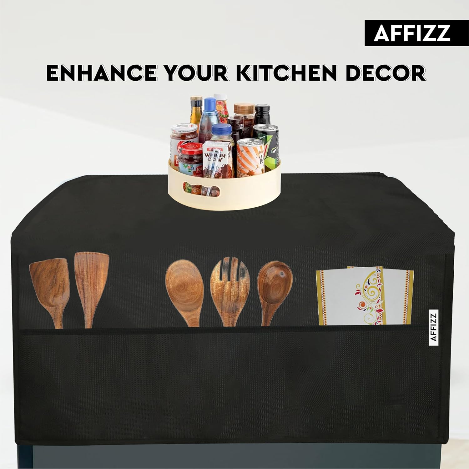 Protect your refrigerator while enhancing your kitchen’s look with the AFFIZZ fridge cover top double door – a smart blend of functionality and elegance. Crafted from high-quality fridge top cover washable cloth, this durable refrigerator cover top keeps your appliance clean, organized, and stylish. The sleek, solid black finish adds a modern touch and blends seamlessly with both contemporary and traditional kitchens. Tailored to fit most standard fridge cover double door and refrigerator cover double door models, this fridge cover for side by side door is more than just decoration. Designed as a refrigerator top cover with six convenient utility pockets, it works as a fridge top cover with pocket that offers easy access to kitchen tools like spatulas, scissors, measuring spoons, or recipe cards. Made with thick, water-resistant polyester, this waterproof fridge top cover double door big size design protects against spills, dust, stains, and everyday kitchen messes. Whether you need a freeze cover for top to hide surface imperfections or to preserve a new finish, this side by side fridge cover for top acts as a durable shield while keeping your kitchen organized. Maintenance is effortless-simply wipe it clean or toss it in the wash as needed. Perfect for minimalist homes, compact spaces, or anyone who appreciates efficient storage, the AFFIZZ fridge top cover with pockets offers both style and practicality. A simple but essential fridge top cover cotton alternative that delivers everyday convenience.