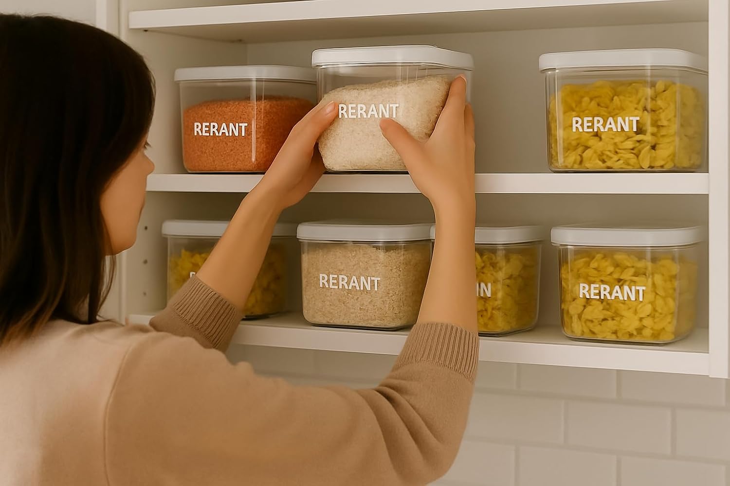 Engineered for aesthetic refinement and optimal usability, these containers reflect a sleek, minimalist design tailored for the modern kitchen. The uniform rectangular profile ensures seamless integration into any storage space while the clear body with bold “RERANT” branding offers immediate content visibility without compromising elegance.