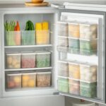 Enjoy a spotlessly organized fridge by using stackable storage boxes designed for groceries and vegetables. These translucent boxes offer visibility and easy access, making your kitchen routine smooth and efficient.