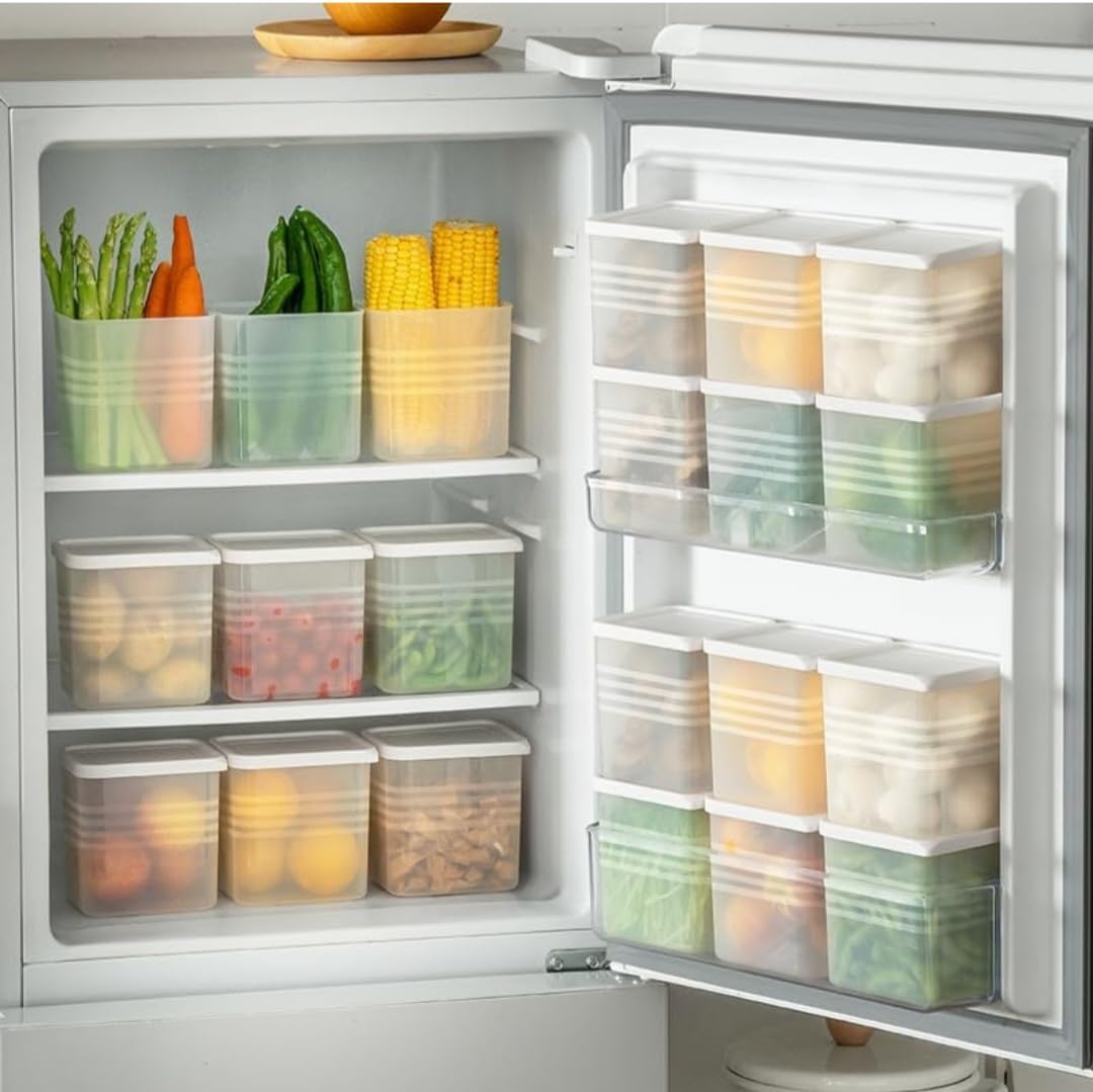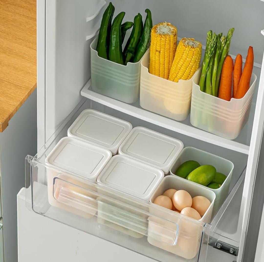 Transform your refrigerator with these modular storage containers, designed to keep vegetables, eggs, and groceries perfectly organized. Their stackable design helps maximize space and maintain a tidy, efficient kitchen environment.