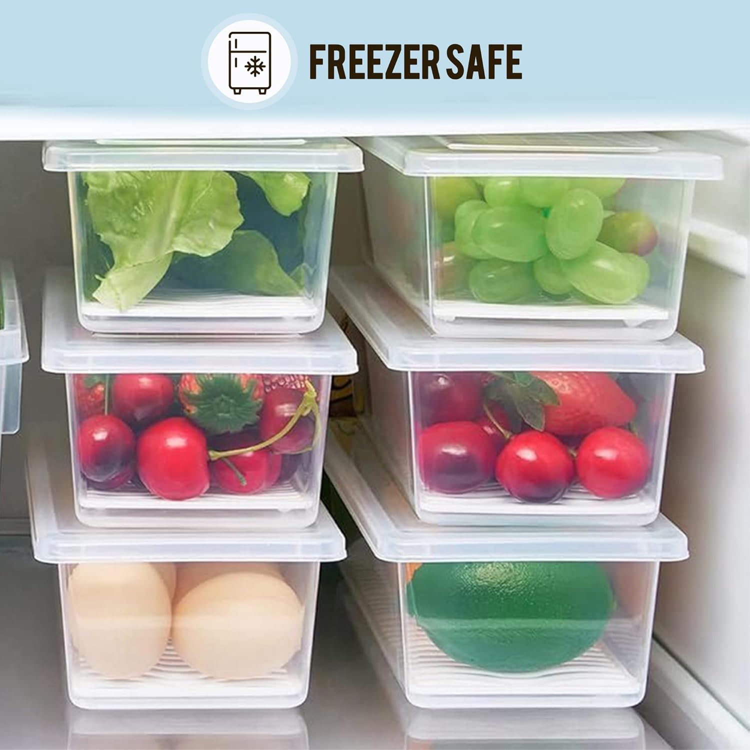 Built-In Drain Tray for Freshness – Each container in this stackable fridge container set features a removable water drain tray to keep produce elevated, away from moisture. Our fridge storage containers are perfect for fresh vegetables and fruits, keeping them clean and dry while extending shelf life.