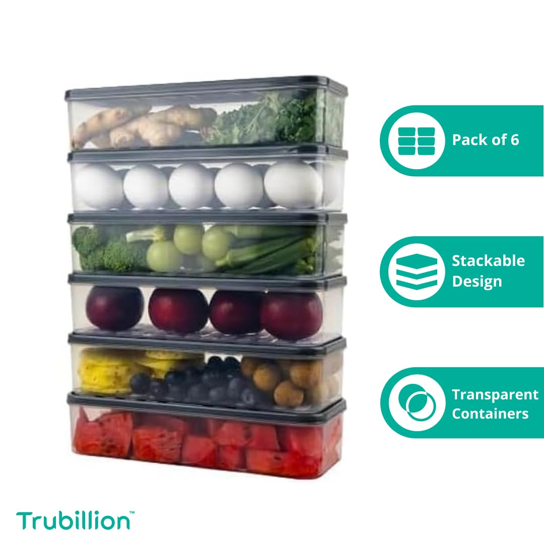 FridgeBox by Trubillion Set of 6 Fridge Storage Containers with Lid 1200ml Freezer Safe Stackable Transparent Boxes for Vegetables Fruits Kitchen