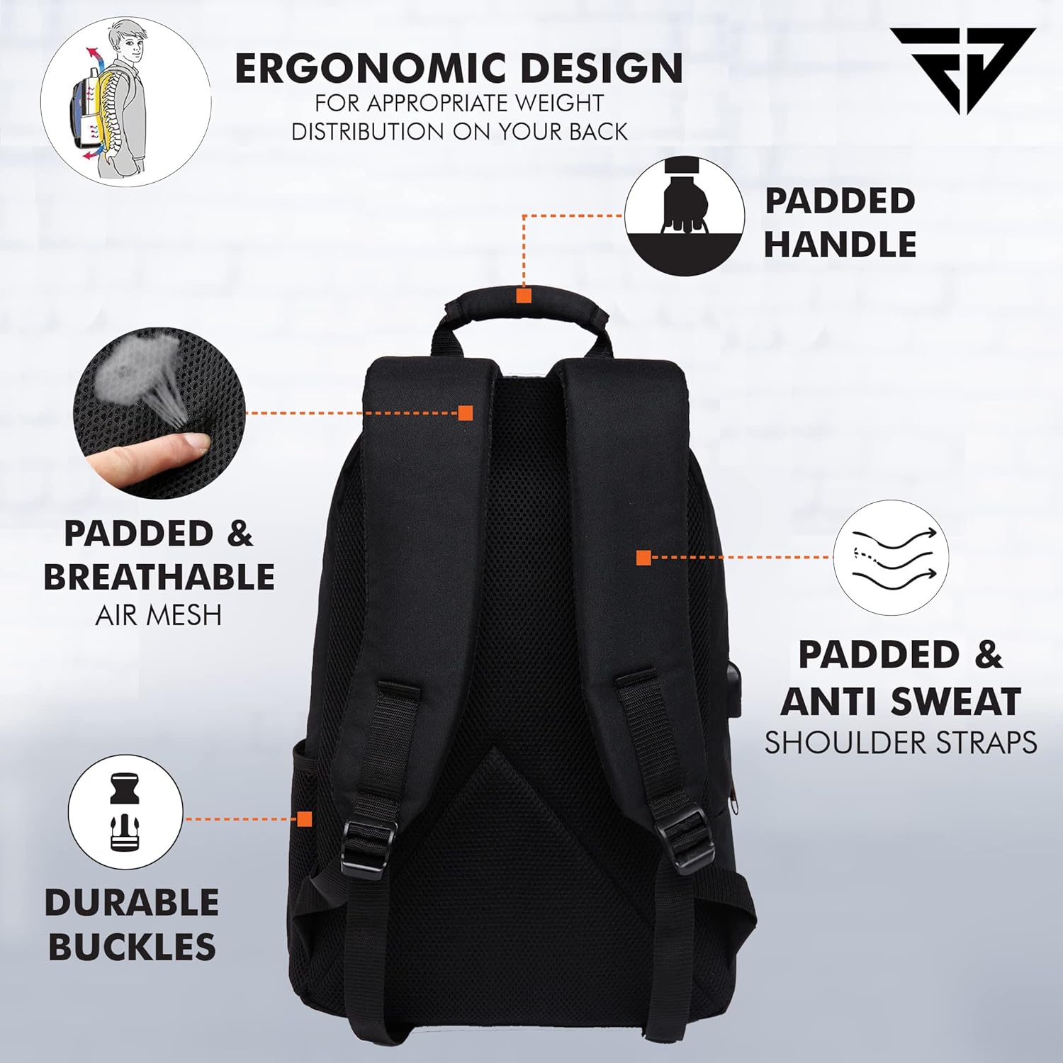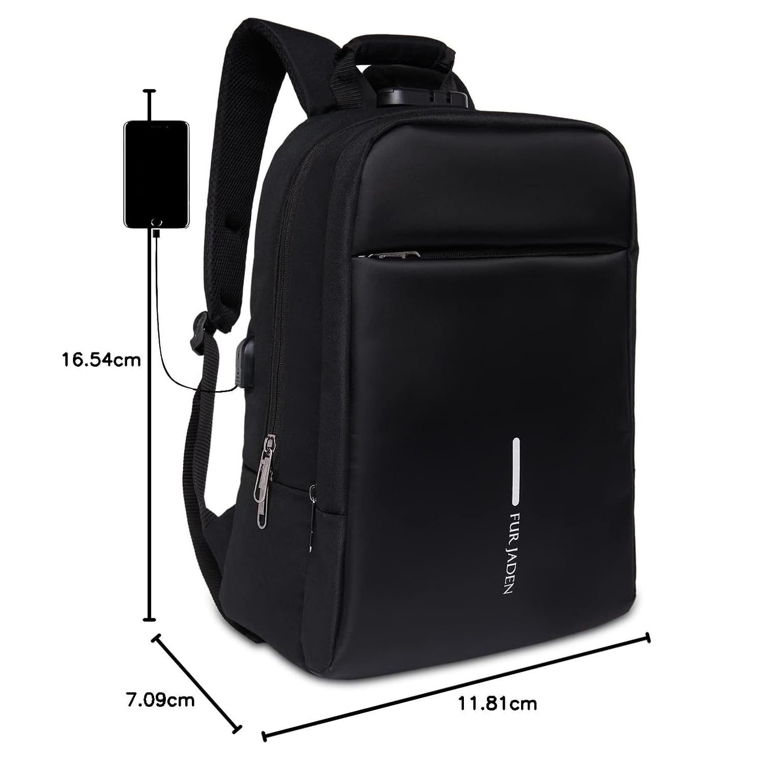 FUR JADEN Anti Theft Number Lock Backpack Bag with 15.6 Inch Laptop Compartment, USB Charging Port & Organizer Pocket for Men Women Boys Girls