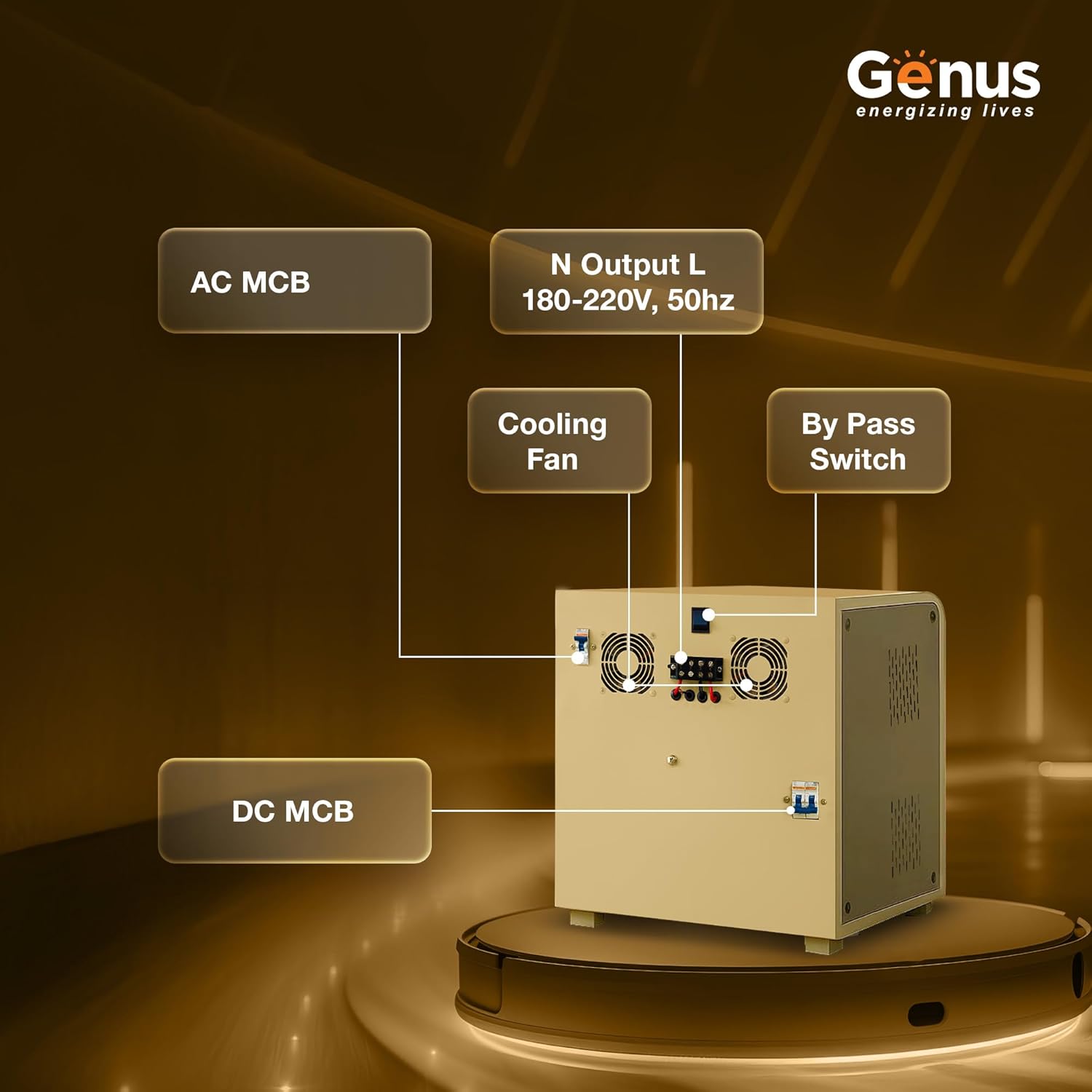 Genus MaxiLion 2400 VA (2.4 KVA) Inverter with Upto 12 Year Life Integrated 2560Wh Lithium-Ion Battery for Home, Office & Shops (Runs Even 1HP Motor)