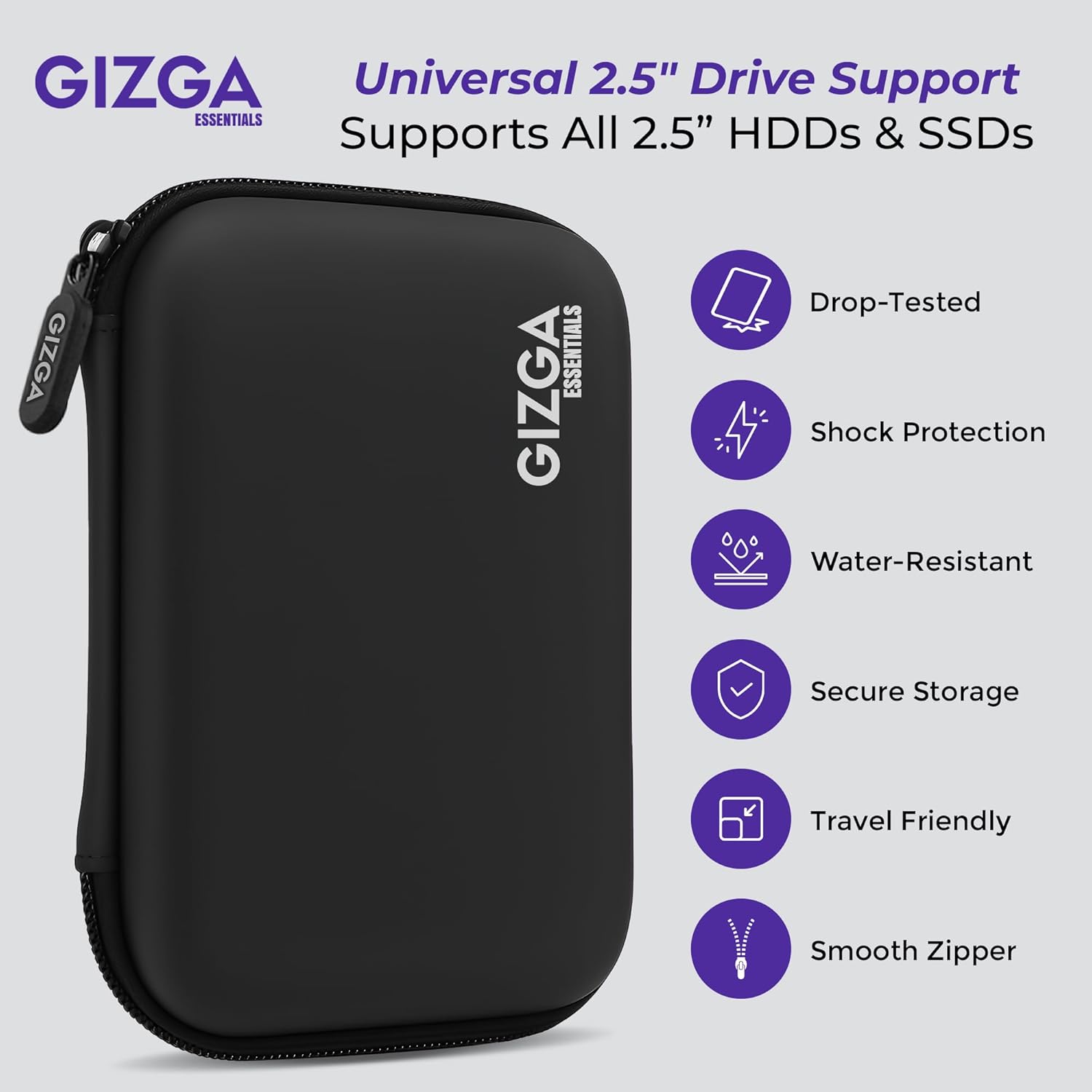 Gizga Essentials Hard Drive Case Shell, 6.35cm/2.5-inch, Portable Storage Organizer Bag for Earphone USB Cable Power Bank Mobile Charger Digital Gadget Hard Disk, Water Resistance Material, Black