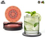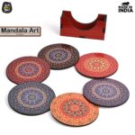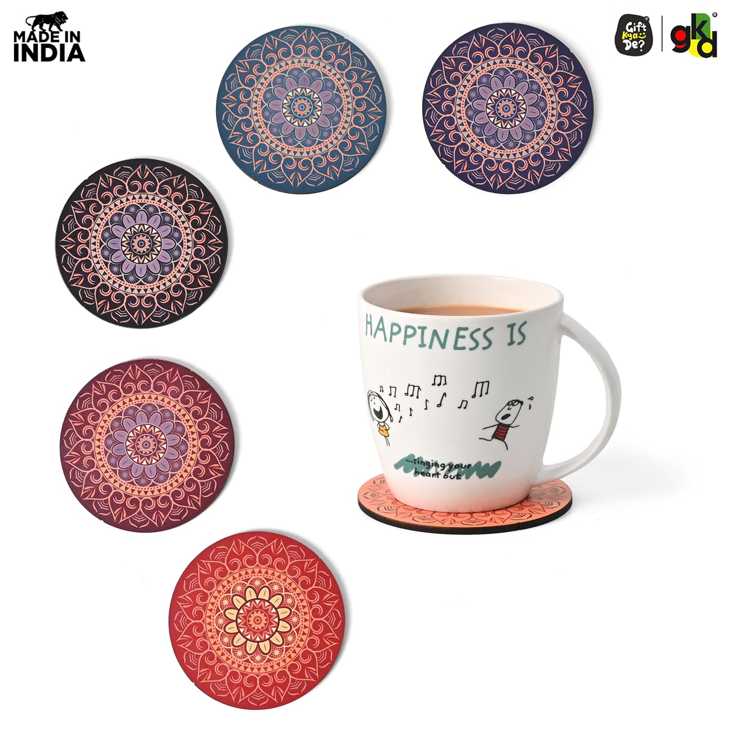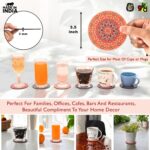 GKD Coaster Set of 6 Beautiful Wooden Coasters with Proper Coaster Stand Designer Coaster Set fit for Tea Cups, Coffee Mugs and Glasses (6 pc Round 3.5 x 3.5 inch) Multi Color