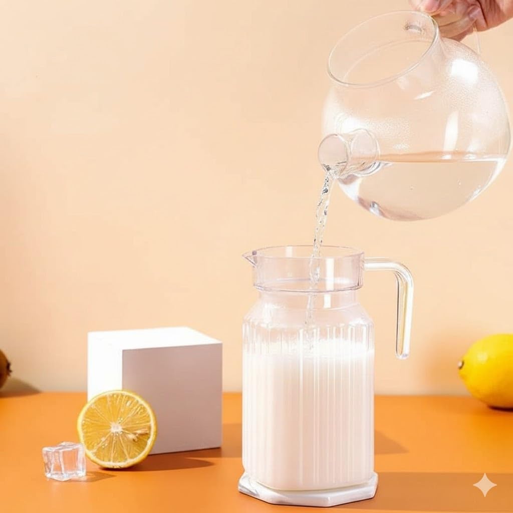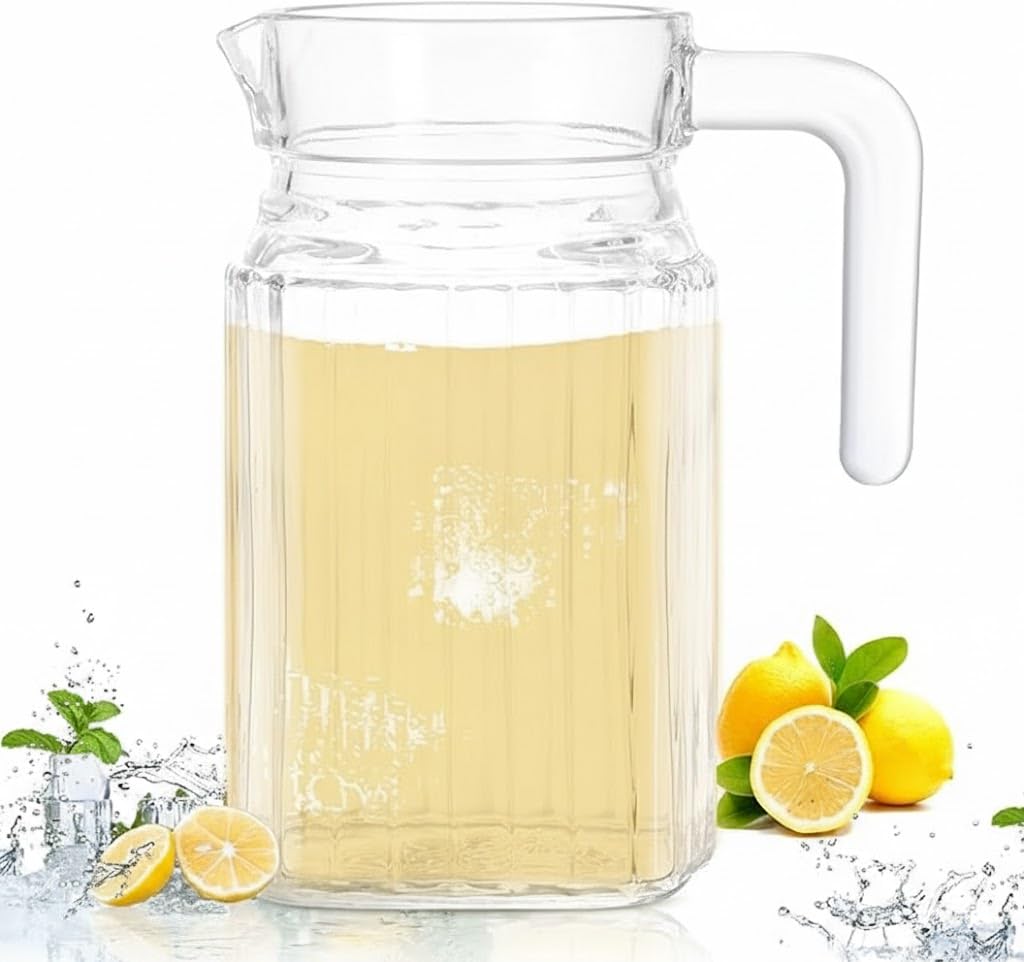 This Premium Quality Juice and Water Glass Jug Pitcher with lid is Perfect for JUICE LOVER. Great for Home and Parties. This Water Juice Glass Jug is the trending Design in the Market Place. Completely Dishwasher and Refrigerator safe. Heat and Scratch Resistant Product.
