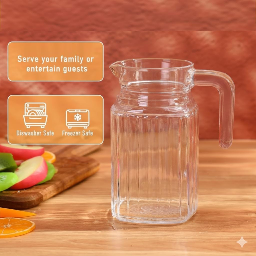The Glass Jug Set for Dining Table are Stylish, strong, durable, and a nice addition to any situation. Give them as a gift to your family and friends, Bring them as a special housewarming presents.