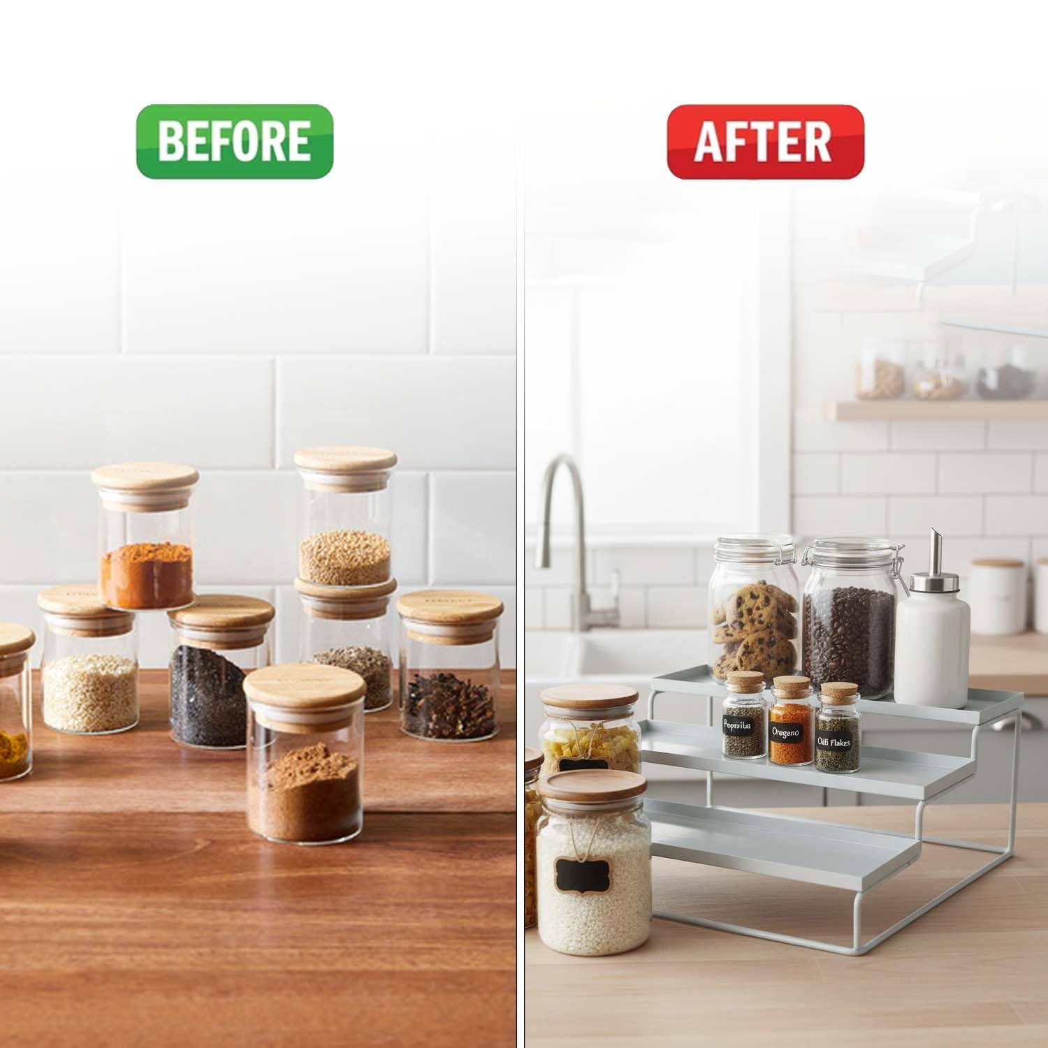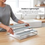 This tool-free organiser is simple to use and doesn’t need to be installed. This organiser can be placed on a kitchen counter, in a pantry, or in the majority of kitchen cabinets. Reduce your clutter and make the most of your space.