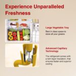 ‎‎Turbo cooling technology, 54mm Thickest Insulation, 16.5 L Largest Freezer,Largest Bottle Space,Tallest in the Category with 119mm, thus giving you the space to store large vessels, 16.44 L Jumbo Vegetable Tray, Low Starting Voltage (140V), Temperature control, Adjustable shelves