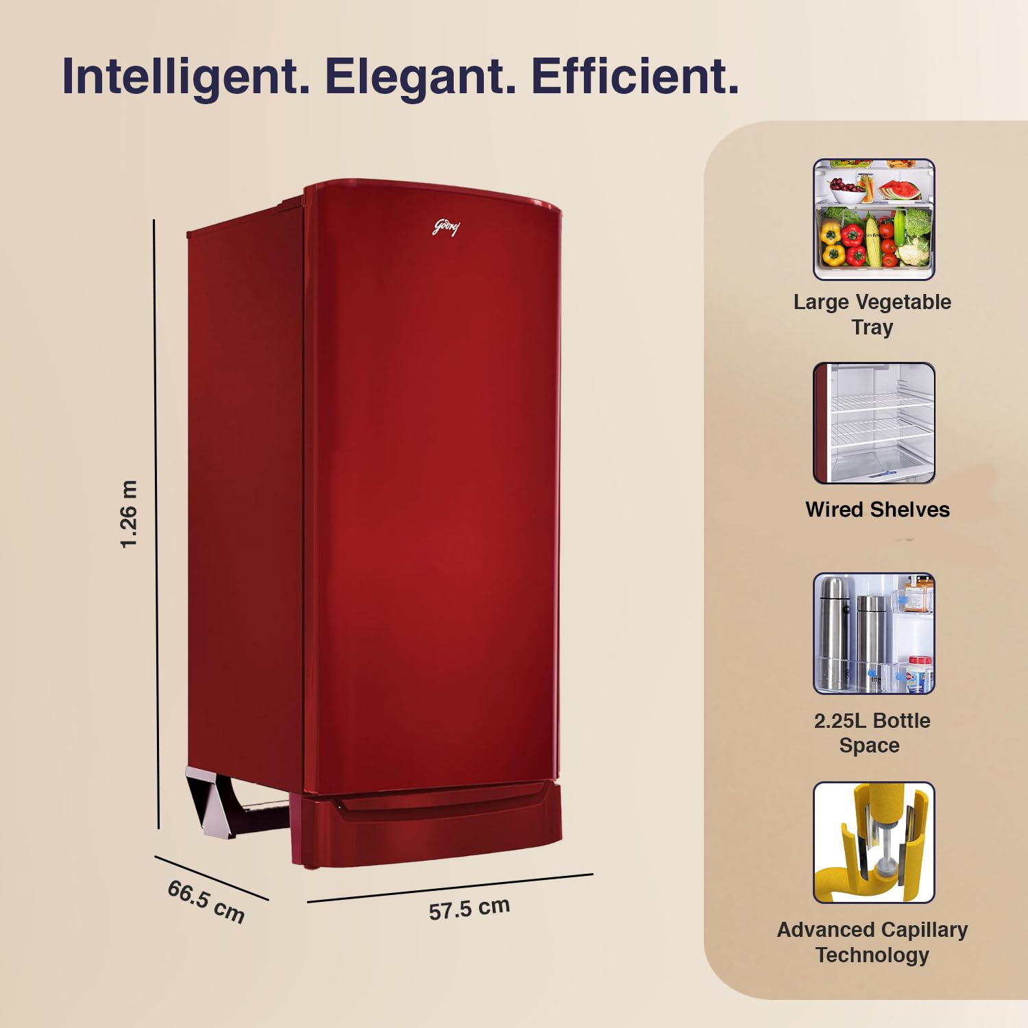 Godrej 183 L 2 Star Farm Fresh Crisper Technology With Jumbo Vegetable Tray Direct Cool Single Door Refrigerator Appliance(RD R190B WRF WN RD, Wine Red)