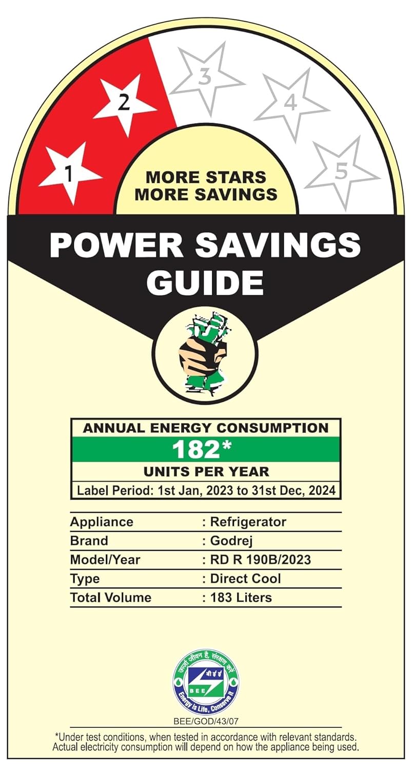 Capacity 183 L : Suitable for families of 2 to 3 members
