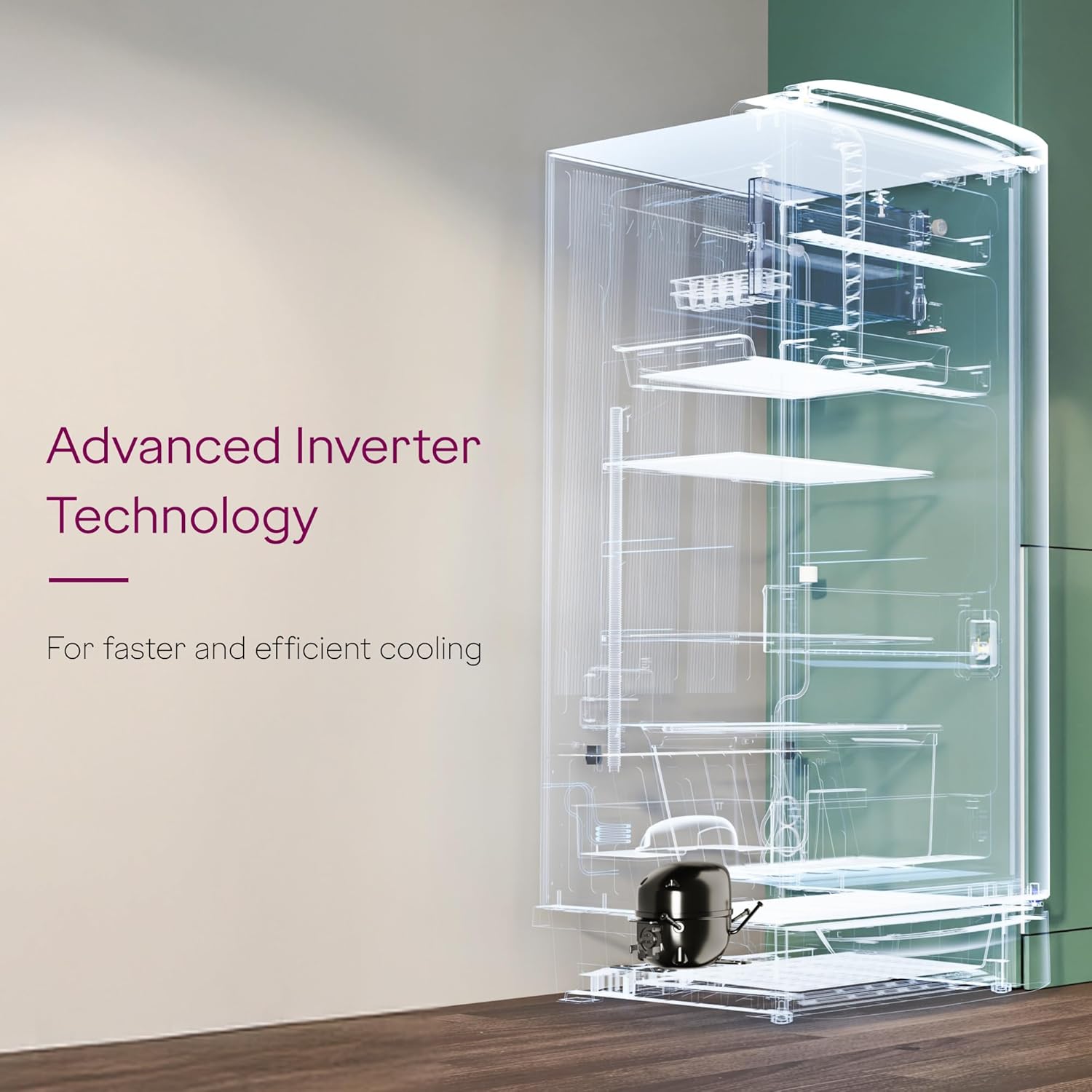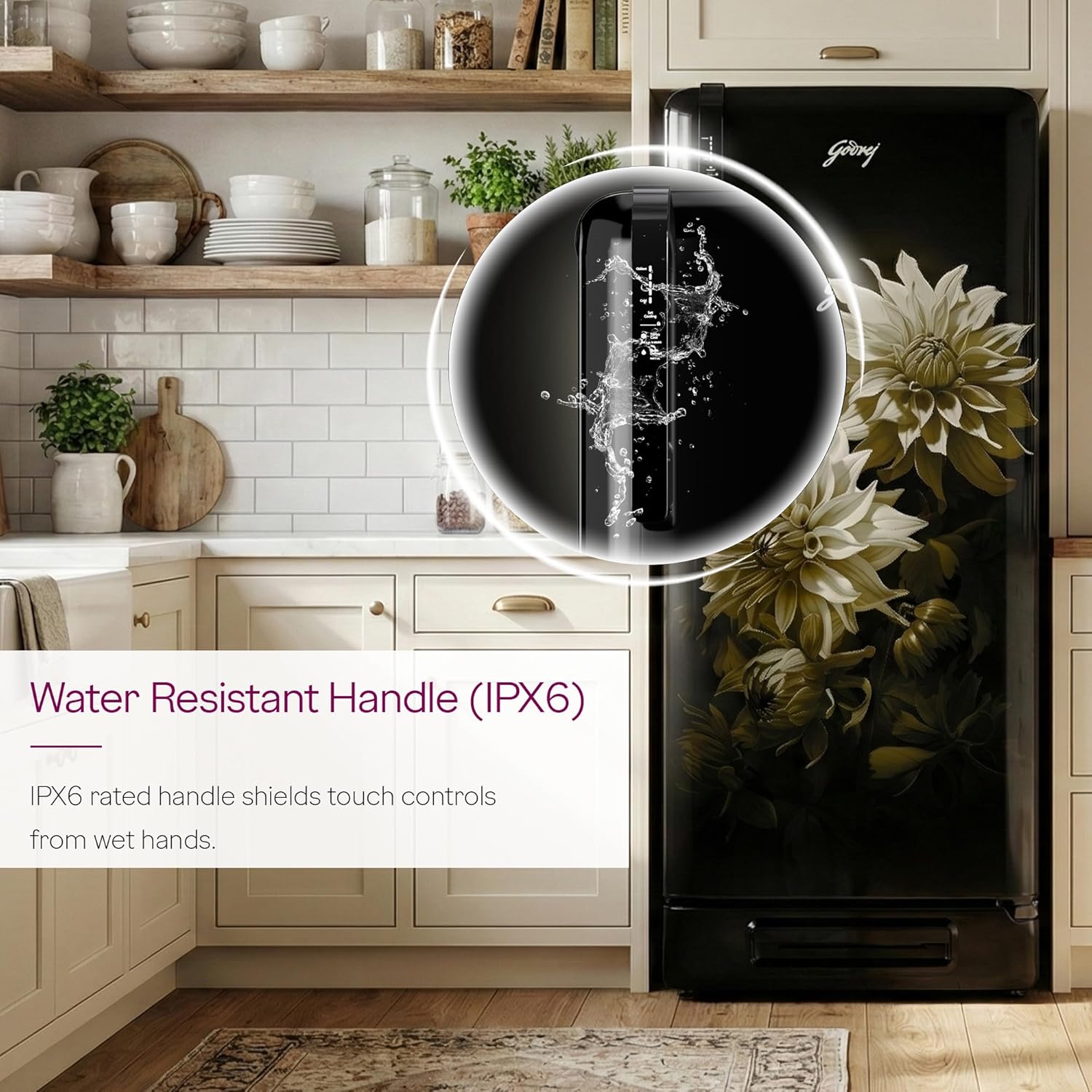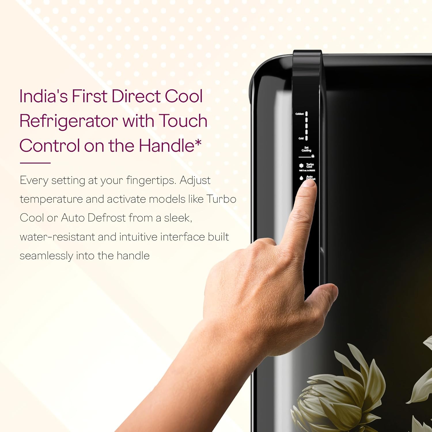 Special features:India’s First Single Door Refrigerator with touch controls on handle, IPX6 Rated water resistant control panel with Intelligent Auto Defrost Technology.