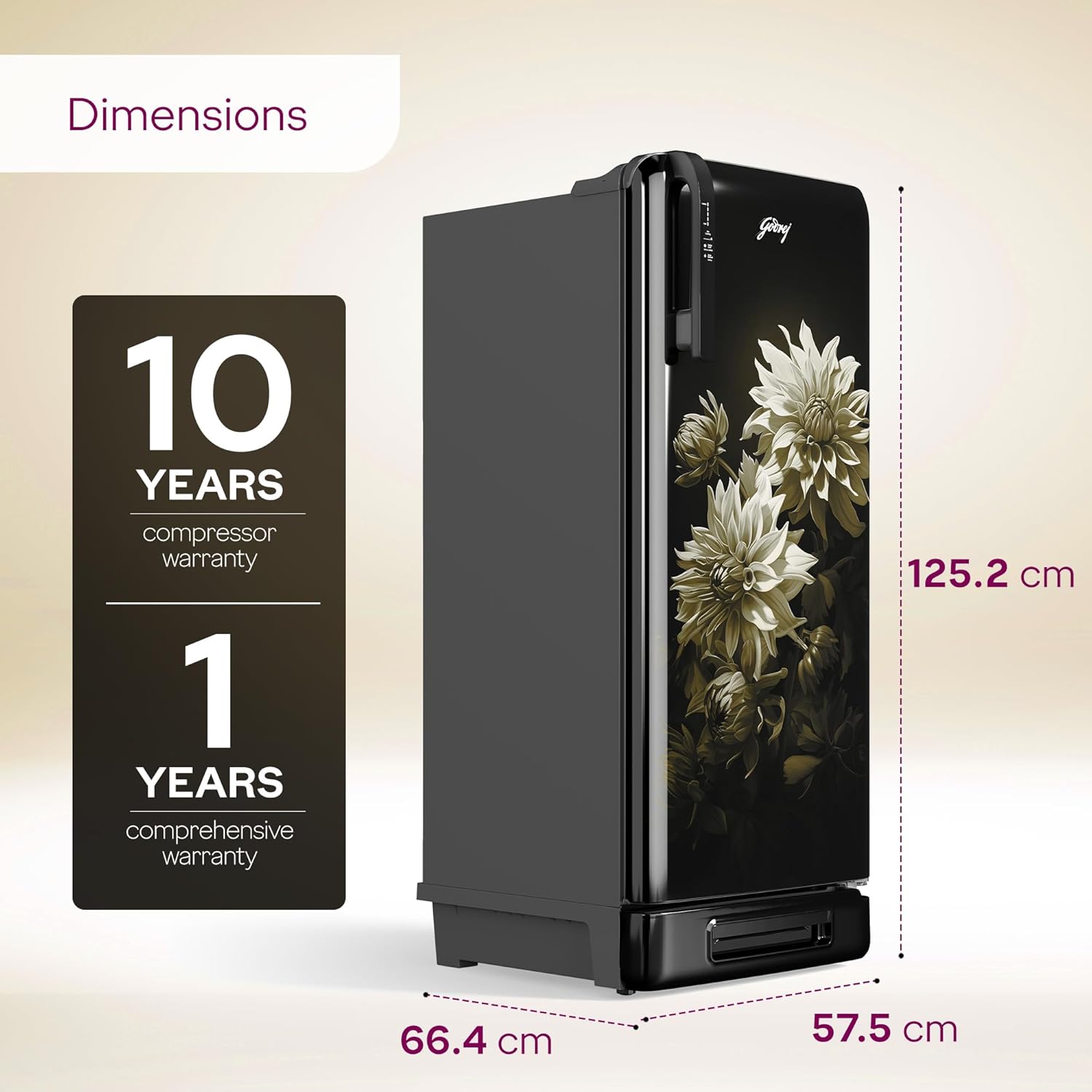Godrej 194 L 5 Star Auto Defrost Technology | India’s first Direct Cool Refrigerator with Touch Controls on Handle | Direct Cool Single Door Refrigerator (RD E-IMPRESS 215E TDIE MD BM, Midnight Bloom)