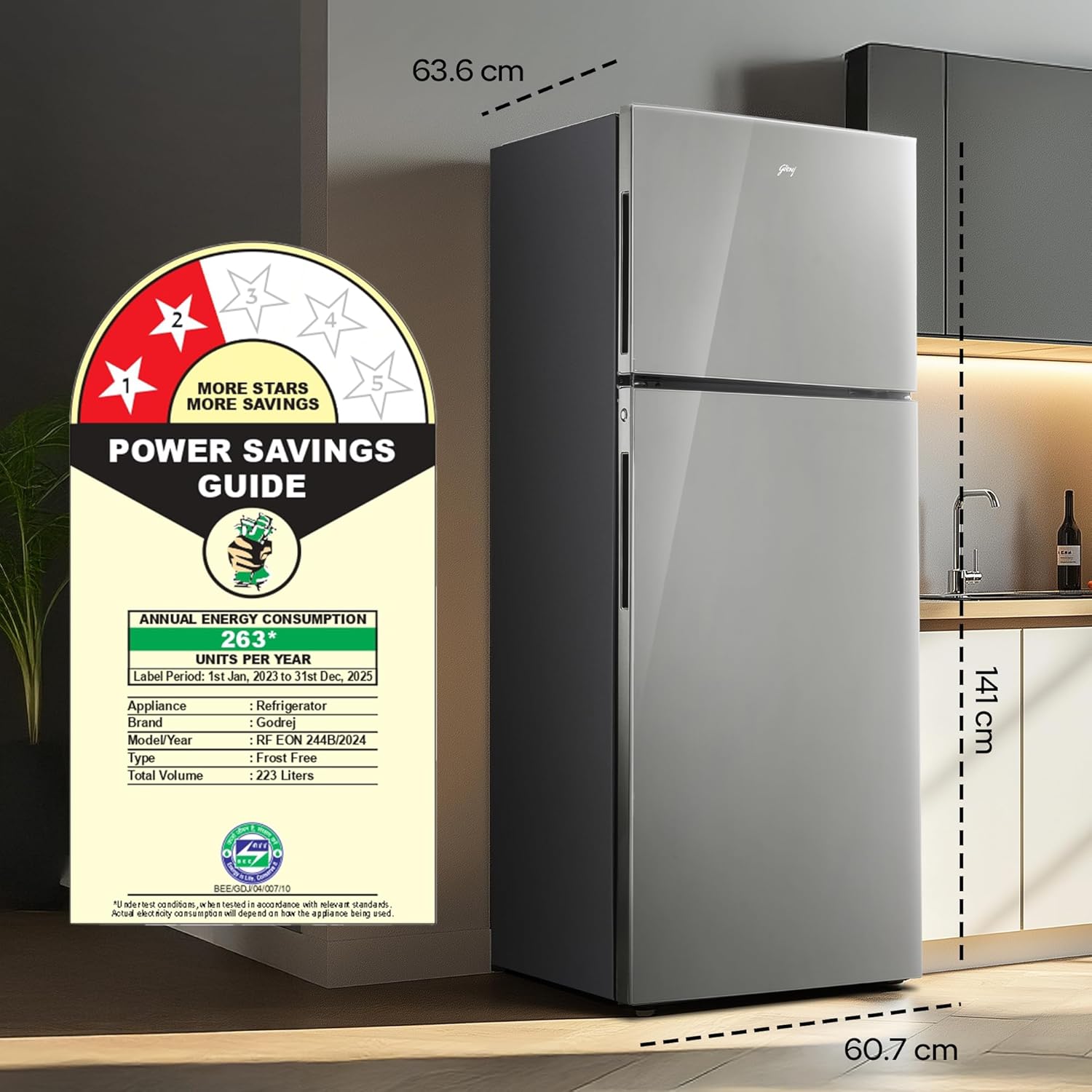 Energy Efficiency: 2 Star : Energy Efficiency (Please refer energy label on product page or contact brand for more details), Annual energy consumption 263 units per year