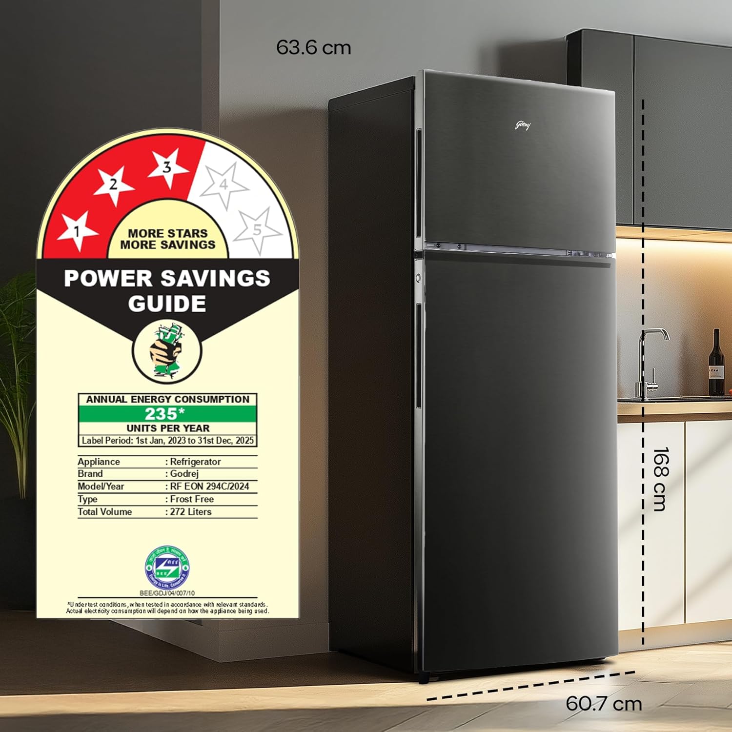 Capacity 272 L : Suitable for families of 3 to 4 members