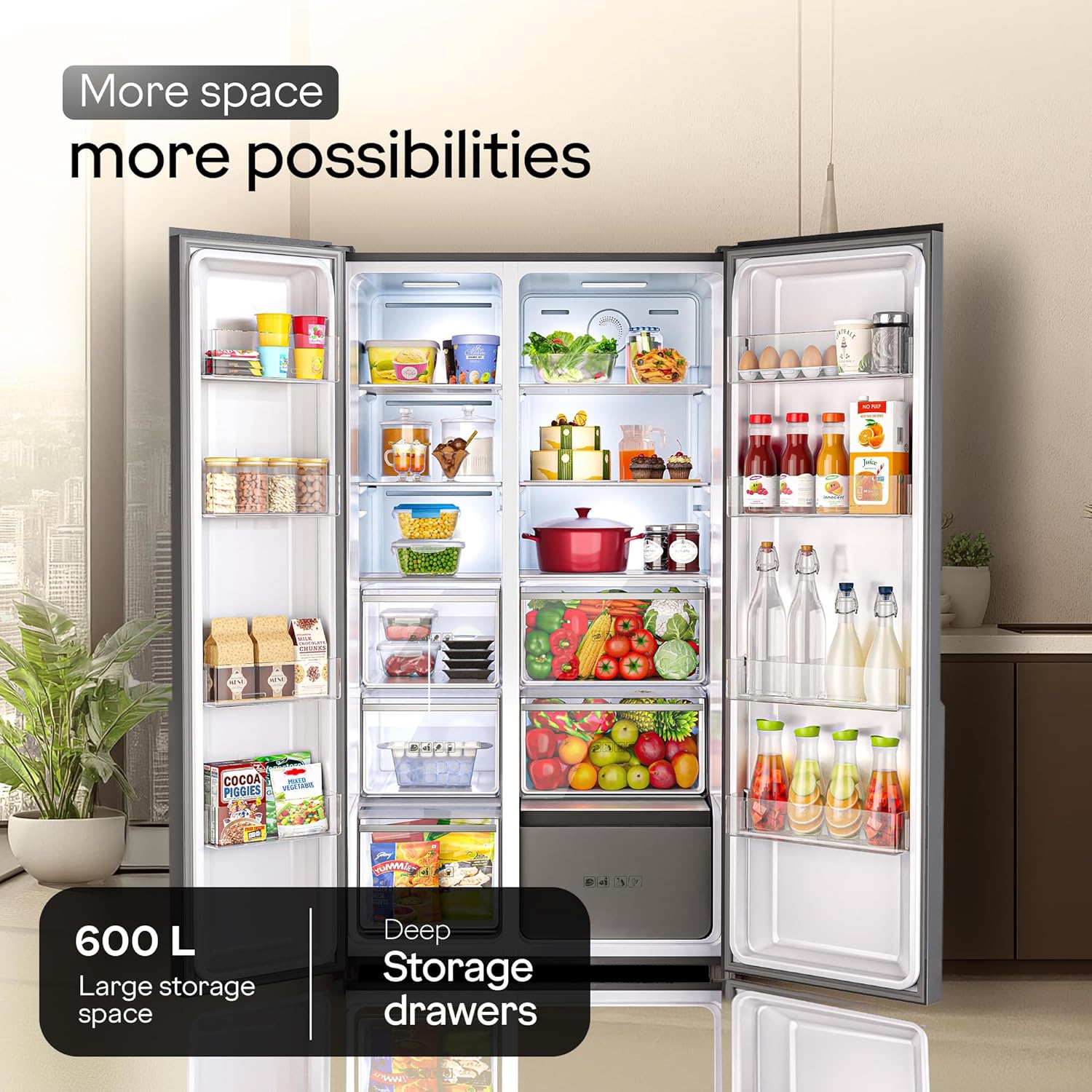Capacity 600 L : Suitable for families with 5 or more members