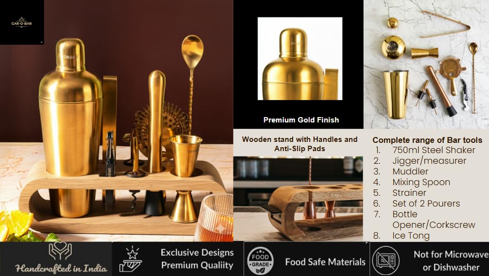 Premium Gold Colour Stainless Steel Construction: Crafted from high-quality, food-grade stainless steel, each bar accessory in the Car-O-Bar Bar Set | Bar kit ensures durability and long-lasting performance.