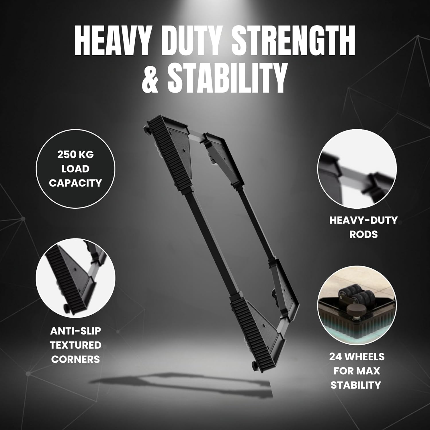 Built with premium materials it ensures durability and can handle up to 250 kg with ease. The 24 smooth wheels provide excellent mobility and the locking mechanism keeps your appliances stable during use. Its adjustable design makes it versatile for washing machines, refrigerators, and dishwashers of various sizes. A reliable, high quality stand that delivers both functionality and convenience.I am very happy with this buying.