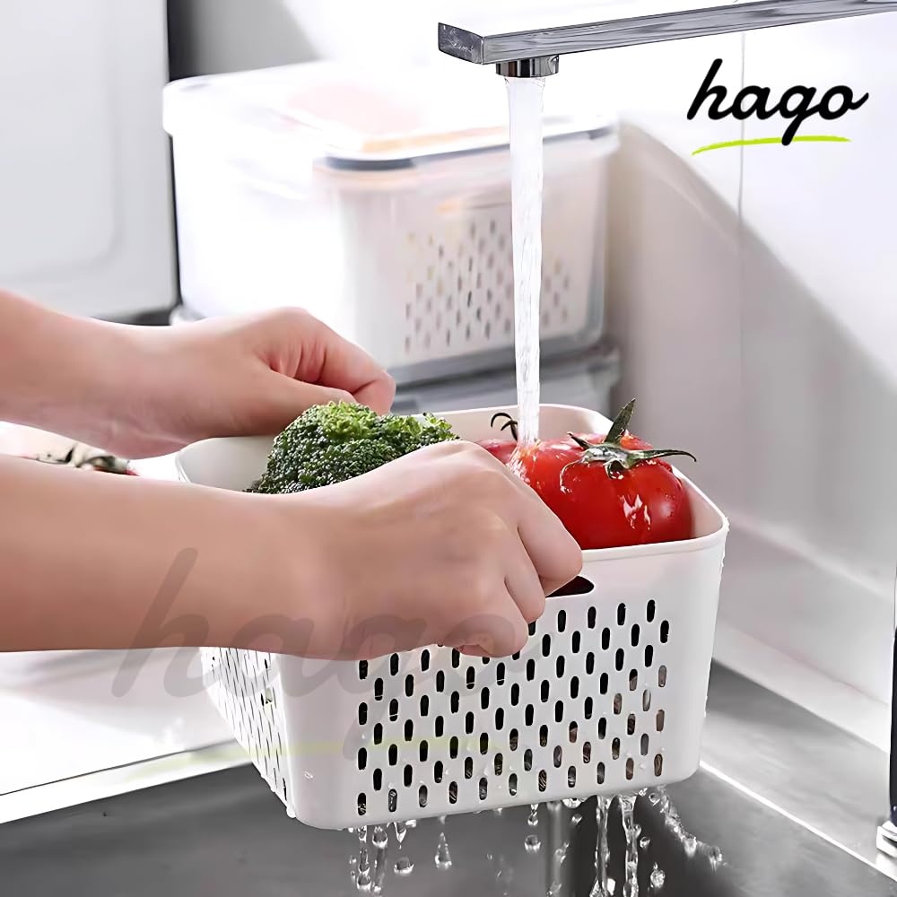 Built-in drain basket allows airflow and removes excess water, extending freshness of fruits and vegetables.