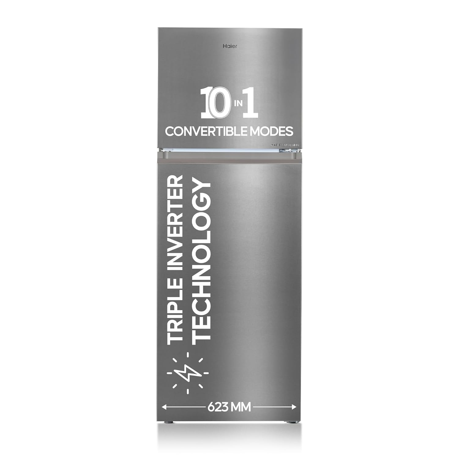 Haier 328 L 3 Star Frost Free Top Mount Double Door Refrigerator | Convertible 10-in-1 | Triple Inverter & Fan Motor Technology | Twist Ice Maker (HEF-333TS-P, Inox Steel)
