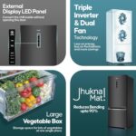 Haier 355 L 3 Star Frost Free Bottom Mount Double Door Refrigerator|Convertible 14-in-1|Jhukna Mat-Bottom Freezer|Digital Display Panel|Triple Inverter|Twist Ice Maker (HEB-363MB-P, Graphite Black)