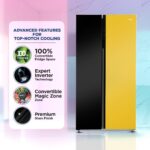 Haier 602L, 3-Star, Vogue 100% Convertible Fridge Space, Expert Inverter 2-Door Side by Side Refrigerator, (HRS-682KYG, Black Yellow Glass)
