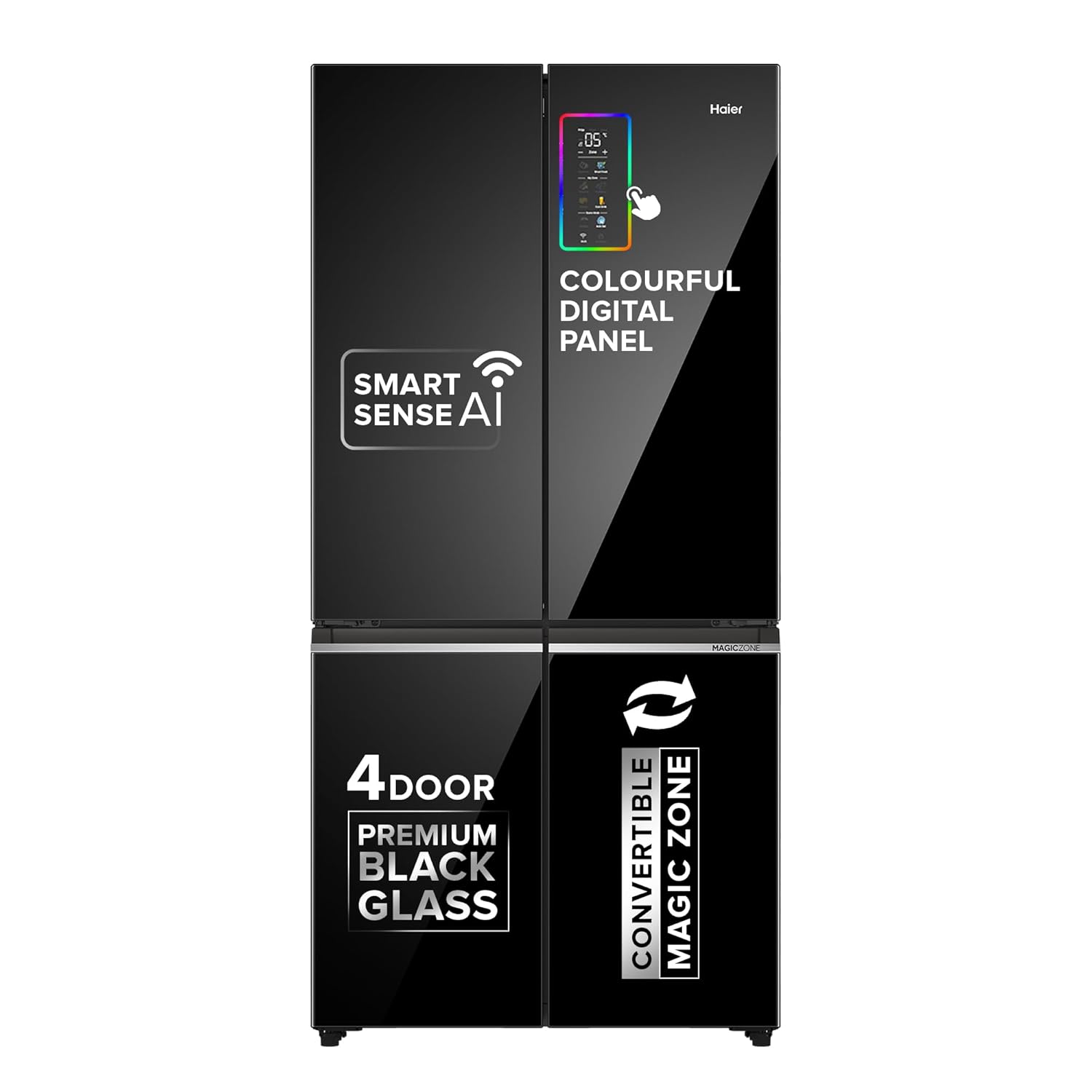 Haier 630L Lumiere French Door 4 Door Side by Side Frost Free Refrigerator|Convertible|Wi-Fi|Inverter|Colourful Display Panel|Motion Sensor|My zone|Sun Lit Interior (HRB-700KGU1, Black Glass)