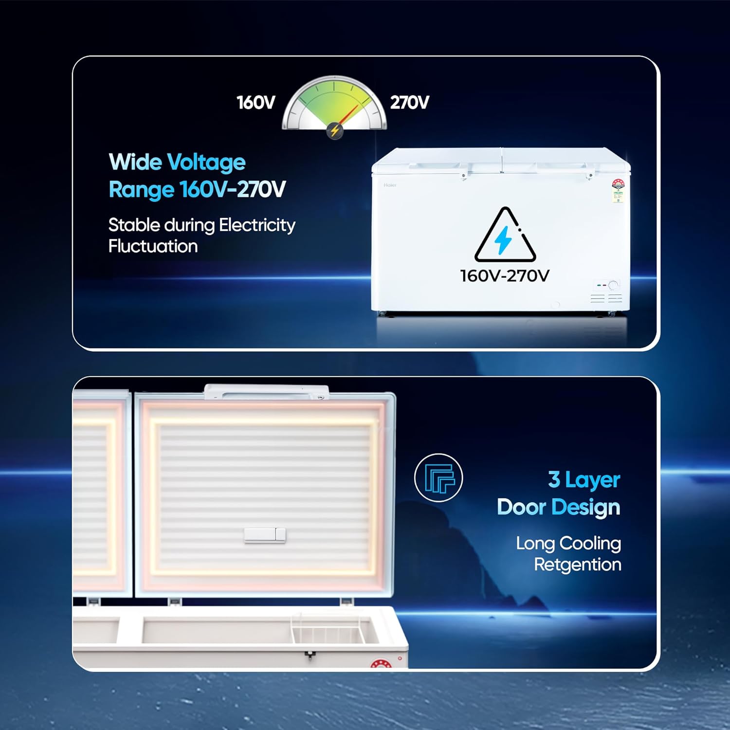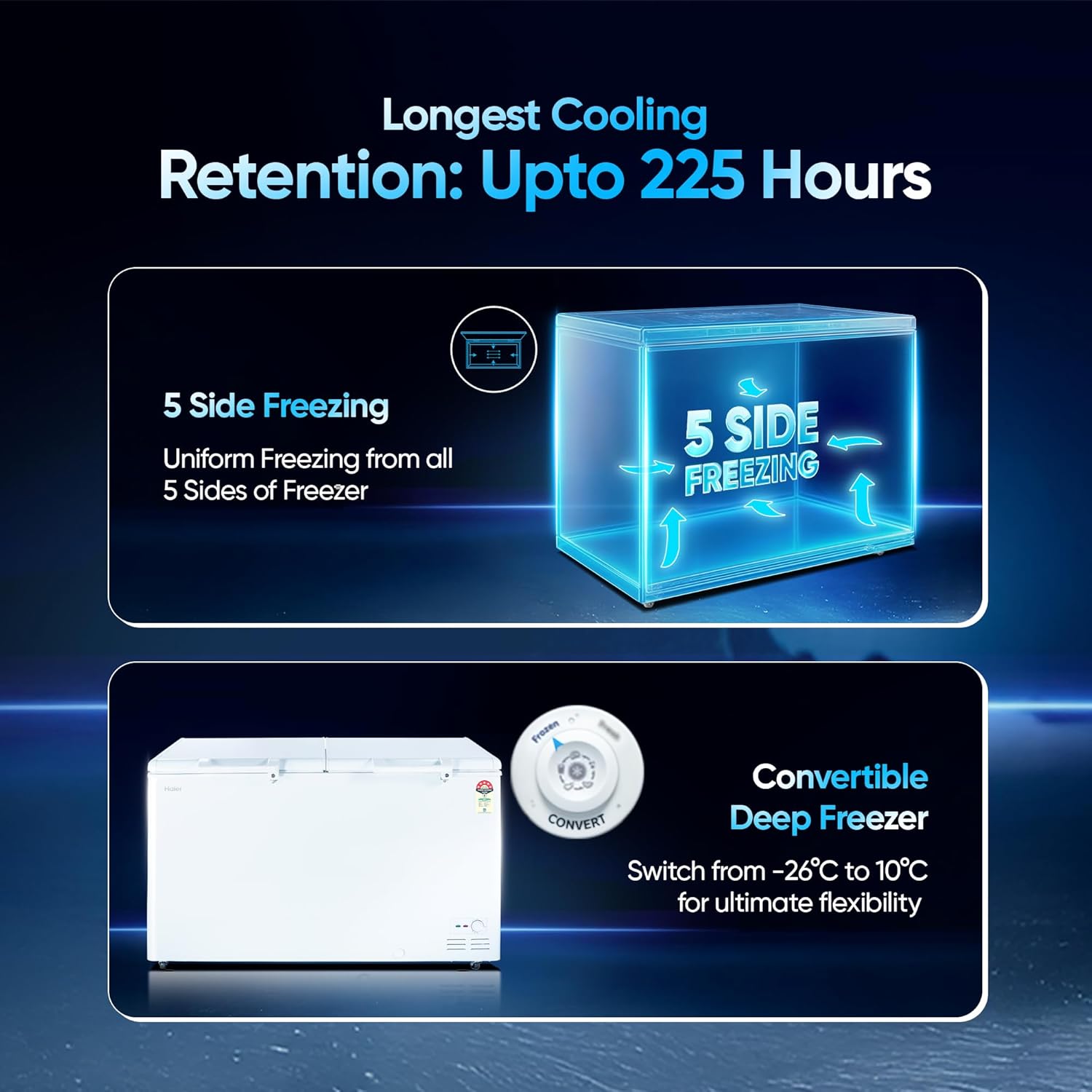 Haier HFC-500DM5, 5 Star Rating Double Door Convertible Deep Freezer, 5 Side Freezing, Dual Condenser, Inside Metal Liner with 70mm Puff Thickness (White)