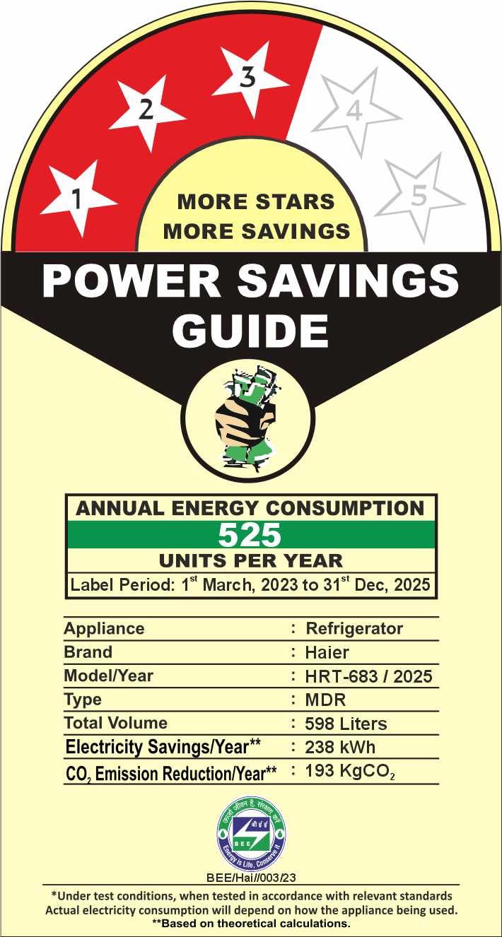 Energy Rating : 3 Star Energy Efficiency | Annual Energy Consumption: 525 Kilowatt Hours Per Year