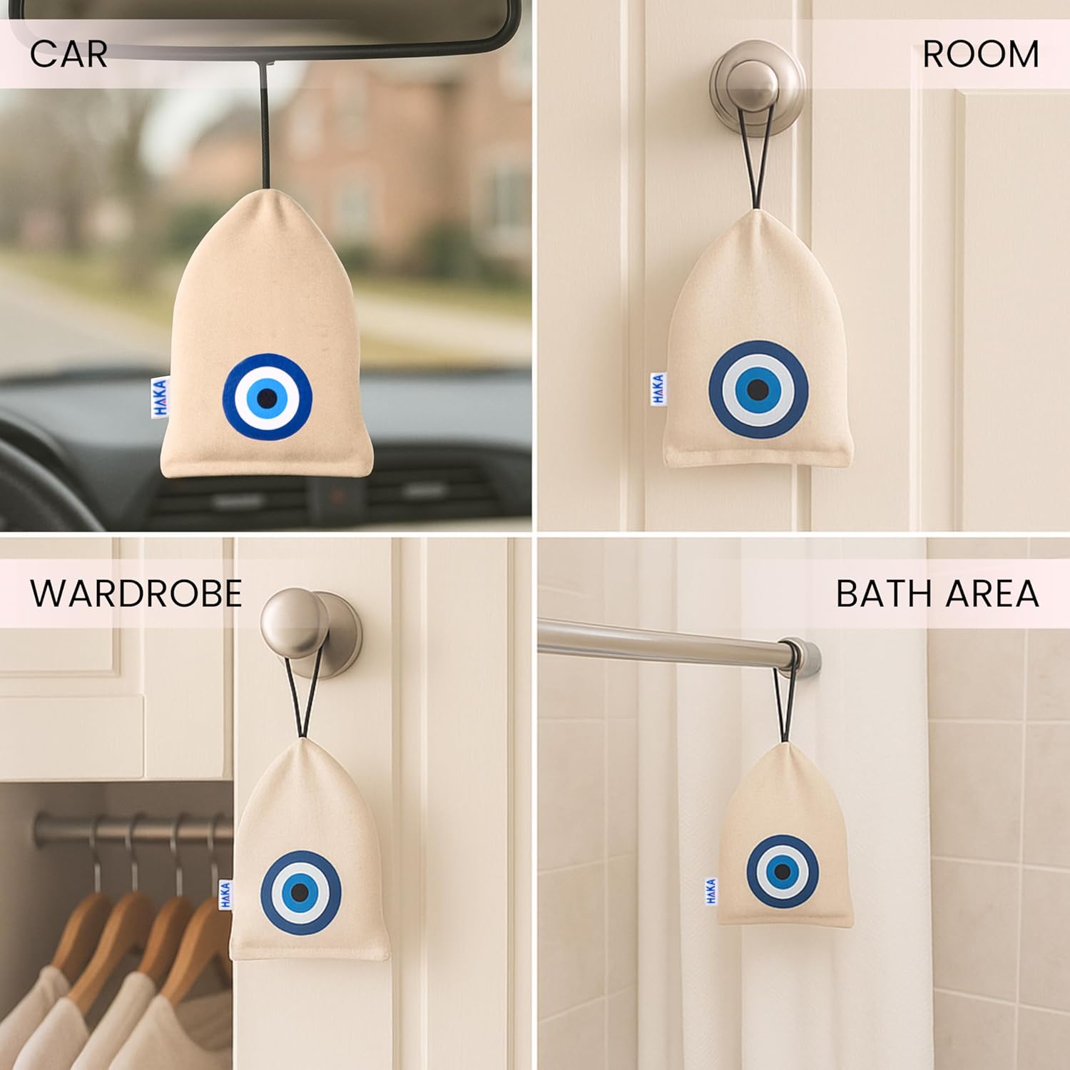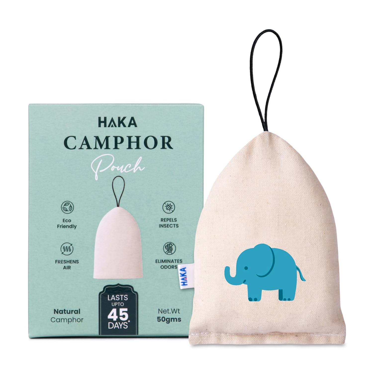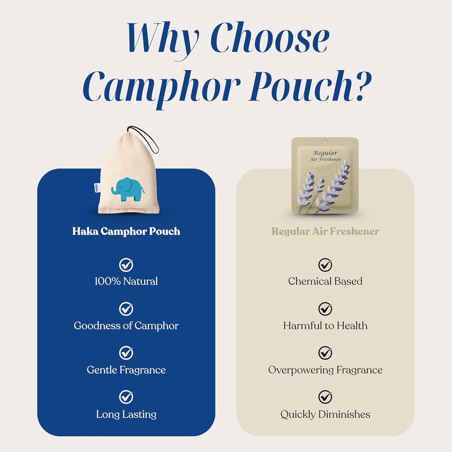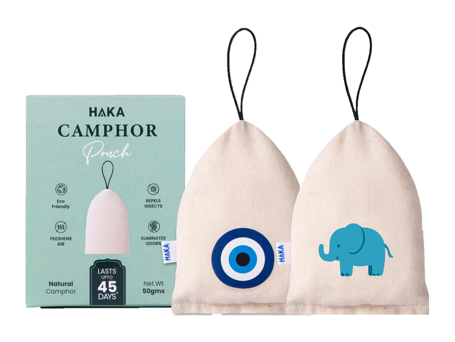 Haka Camphor Pouch –100% Pure Camphor | Multipurpose Natural Chemical Free Air Freshener for Car, Wardrobe, Bathroom & Room | Eco-Friendly Aroma Bag (Pack of 2) (Elephant, Evil Eye, Natural)