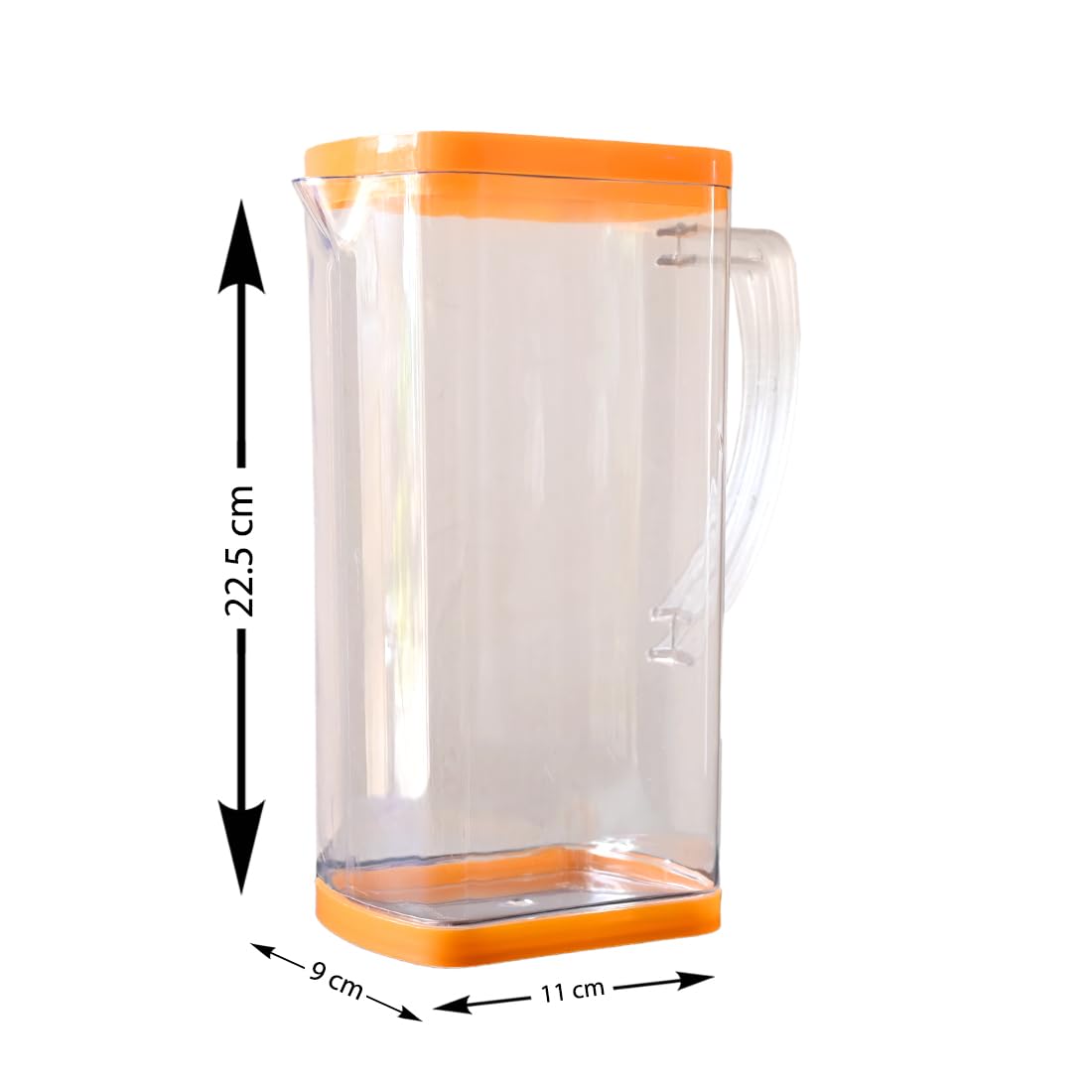 Harmi Enterprise Plastic Water Jug for Home & Fridge | Serving Juice Water Cocktails Mocktails | 2L Capacity | Easy to Clean (Pack of 1) (Orange-Transparent)