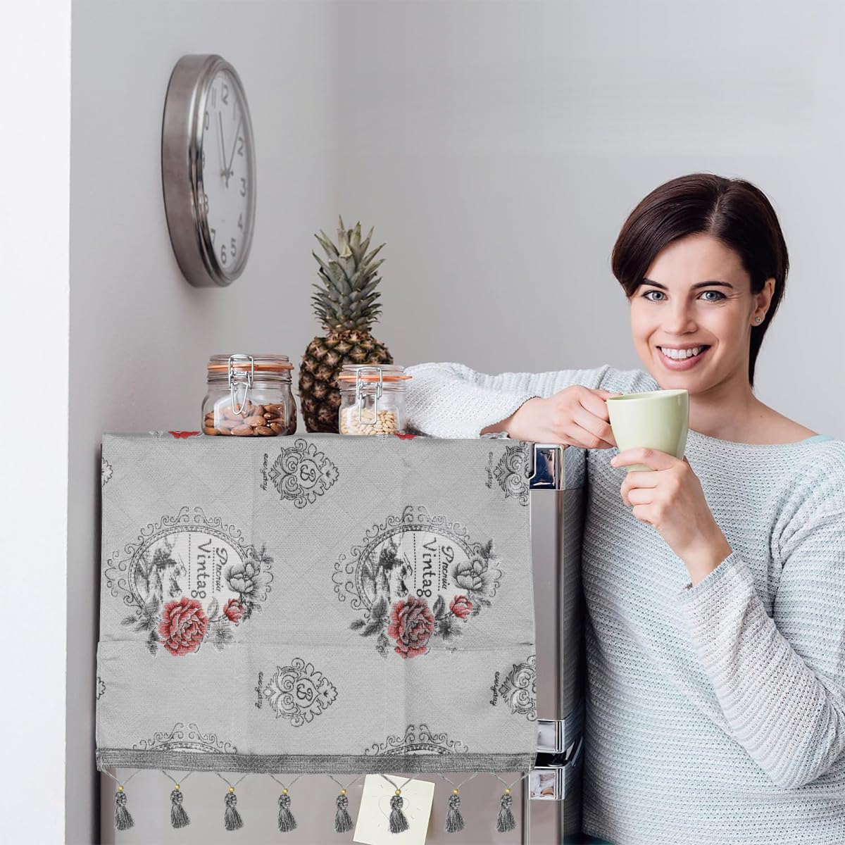 ELEGANT FLORAL PRINT DUST COVER: This stylish floral print fridge cover, featuring chic tassel accents. Perfect for side by side fridge, it adds a pop of color while protecting your appliance from dust and spills.