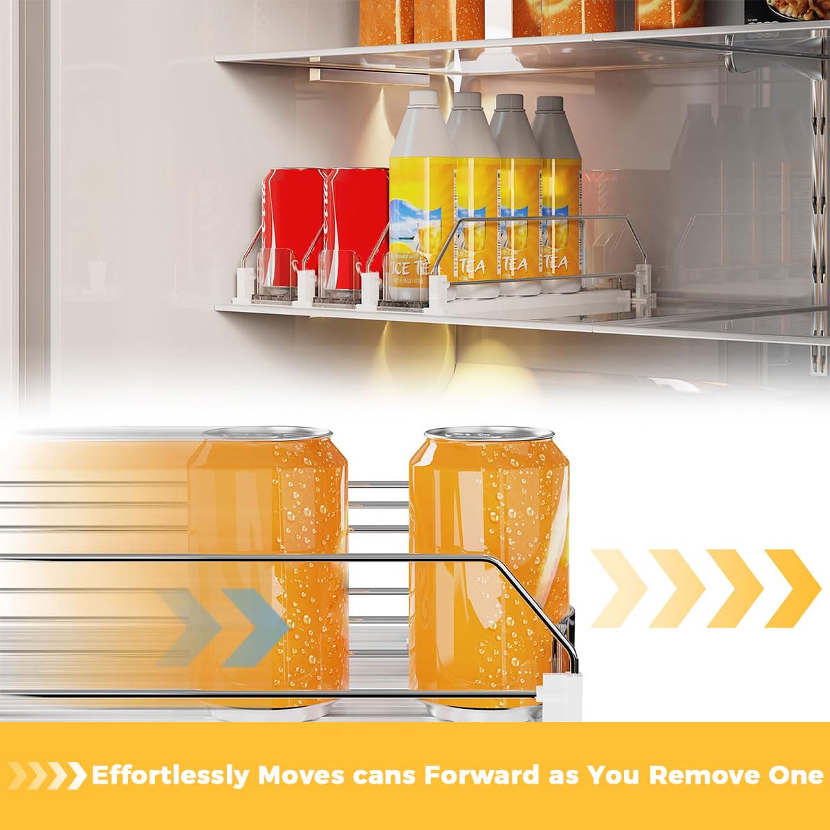 LARGE 20-CAN CAPACITY: Maximize your refrigerators storage space with generous capacity. The organizer holds up to 20 cans at once, keeping drinks neatly arranged and ready to enjoy. No more cluttered shelves or misplaced canseverything stays organized, visible, and quickly accessible .