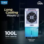 100-Litre Large Water Tank for Long Cooling Hours Equipped with a massive 100-litre tank, this cooler allows continuous cooling for long hours without frequent refilling. It’s perfect for both homes and commercial spaces, ensuring comfort throughout hot summer days.