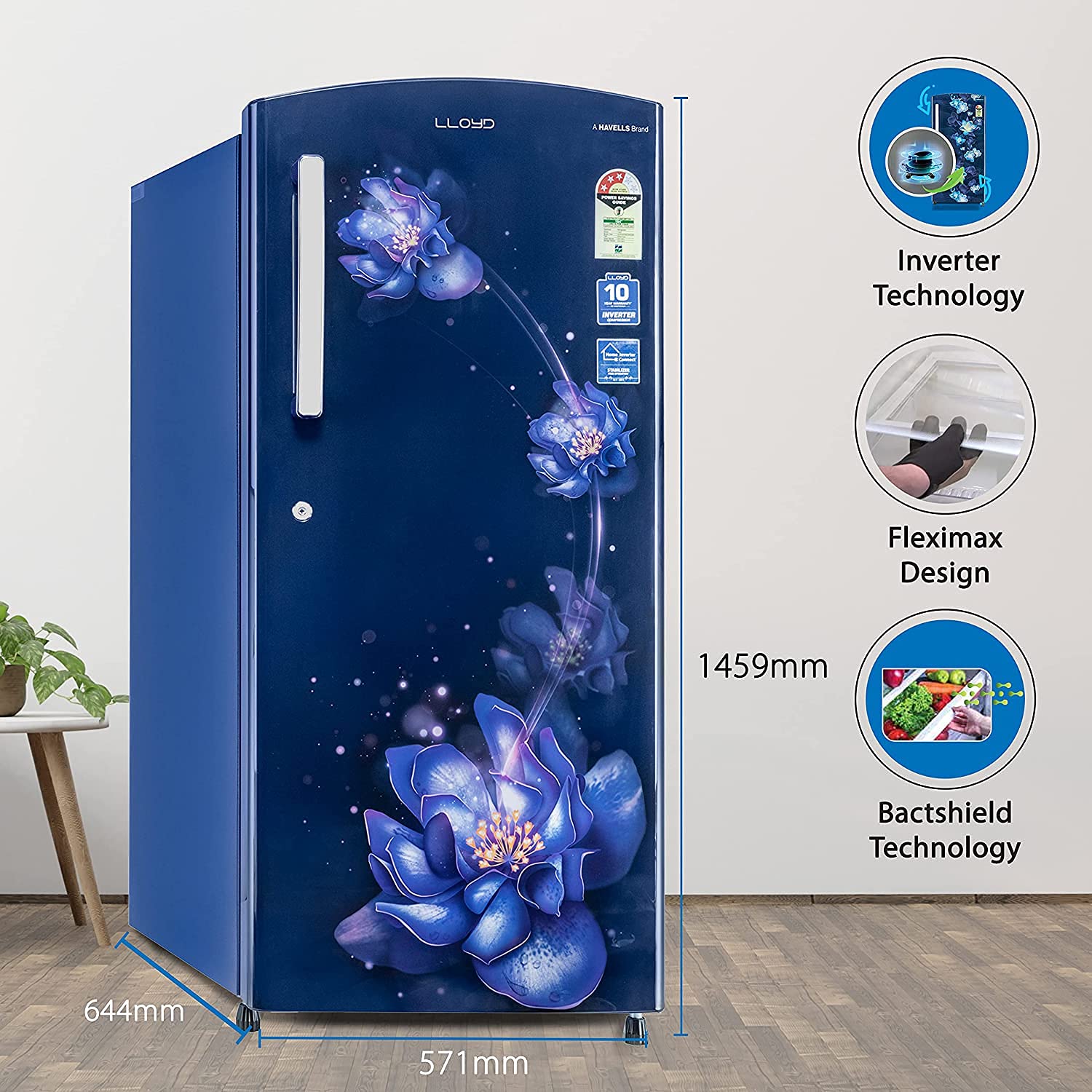 Havells-Lloyd 255 L 3 Star Inverter Direct Cool Single Door Refrigerator (GLDF273SSBT2PB Stellata Blue), Free 1 Year Extended warranty