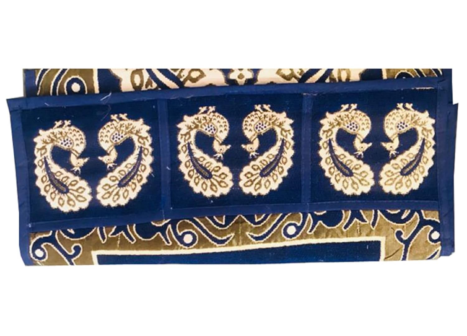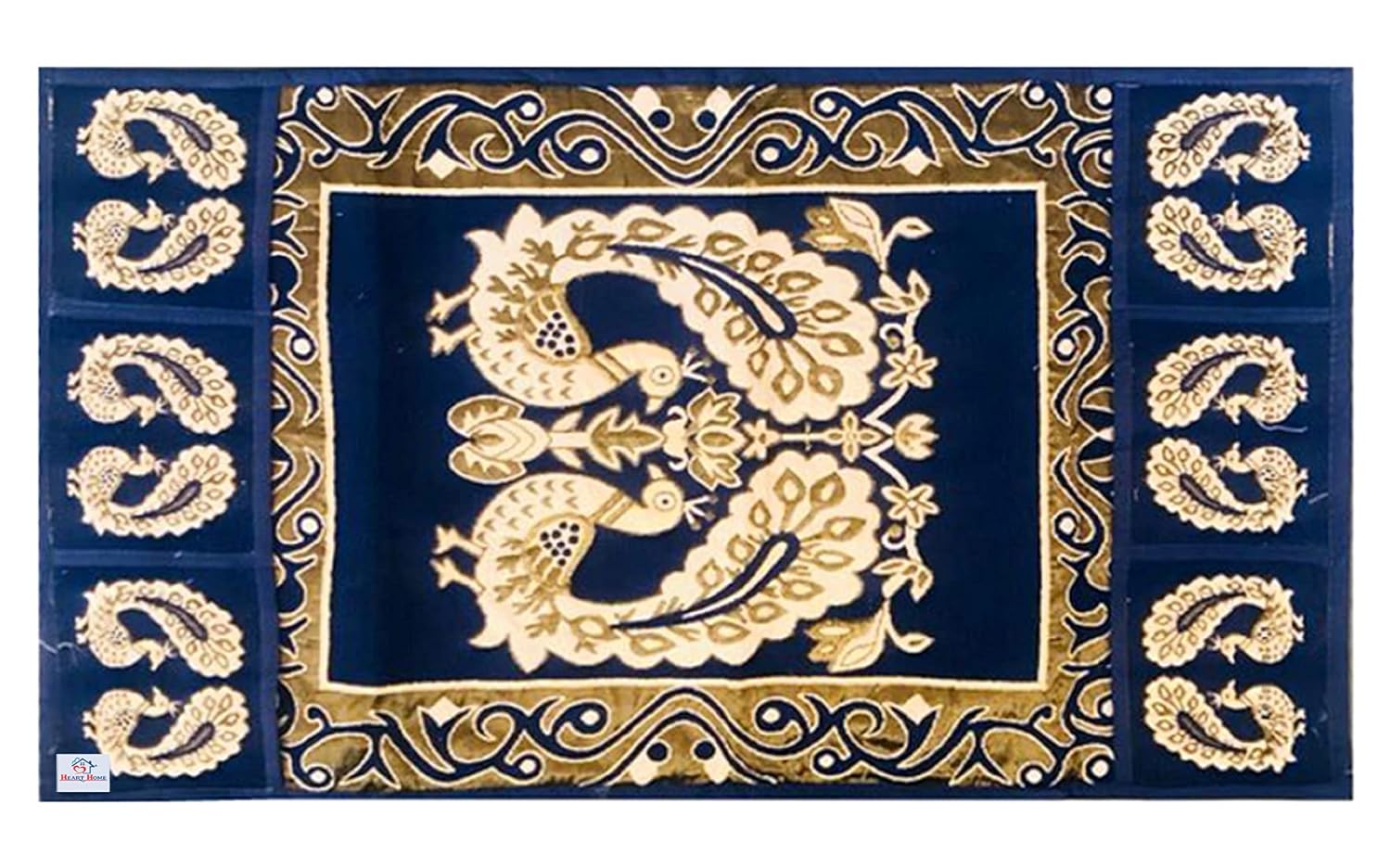 Heart Home Fridge Top Cover with 6 Utility Side Pockets|Peacock Design & Durable Cotton|Size 98 x 58 CM (Blue)